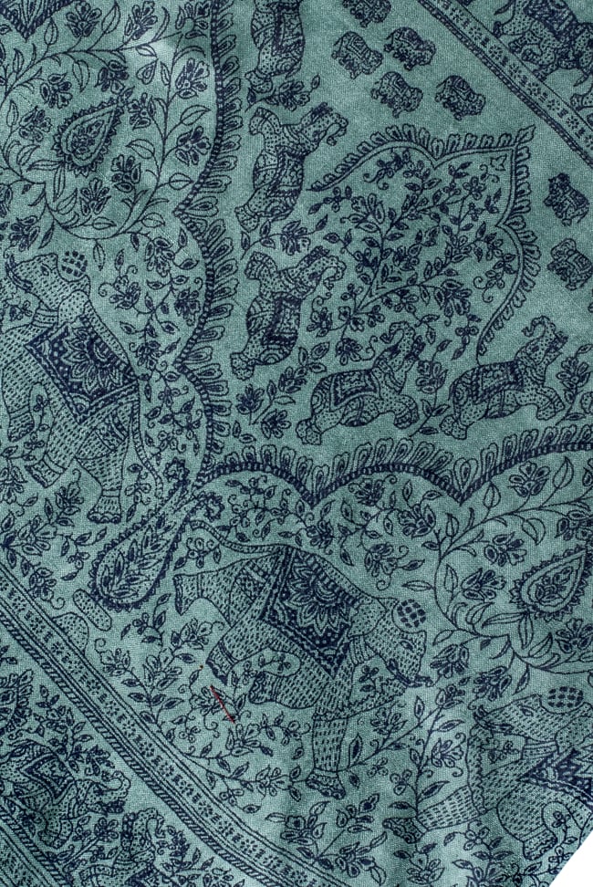 端の部分を見てみました。インドらしいエスニックな紋様の中に象が歩いています
