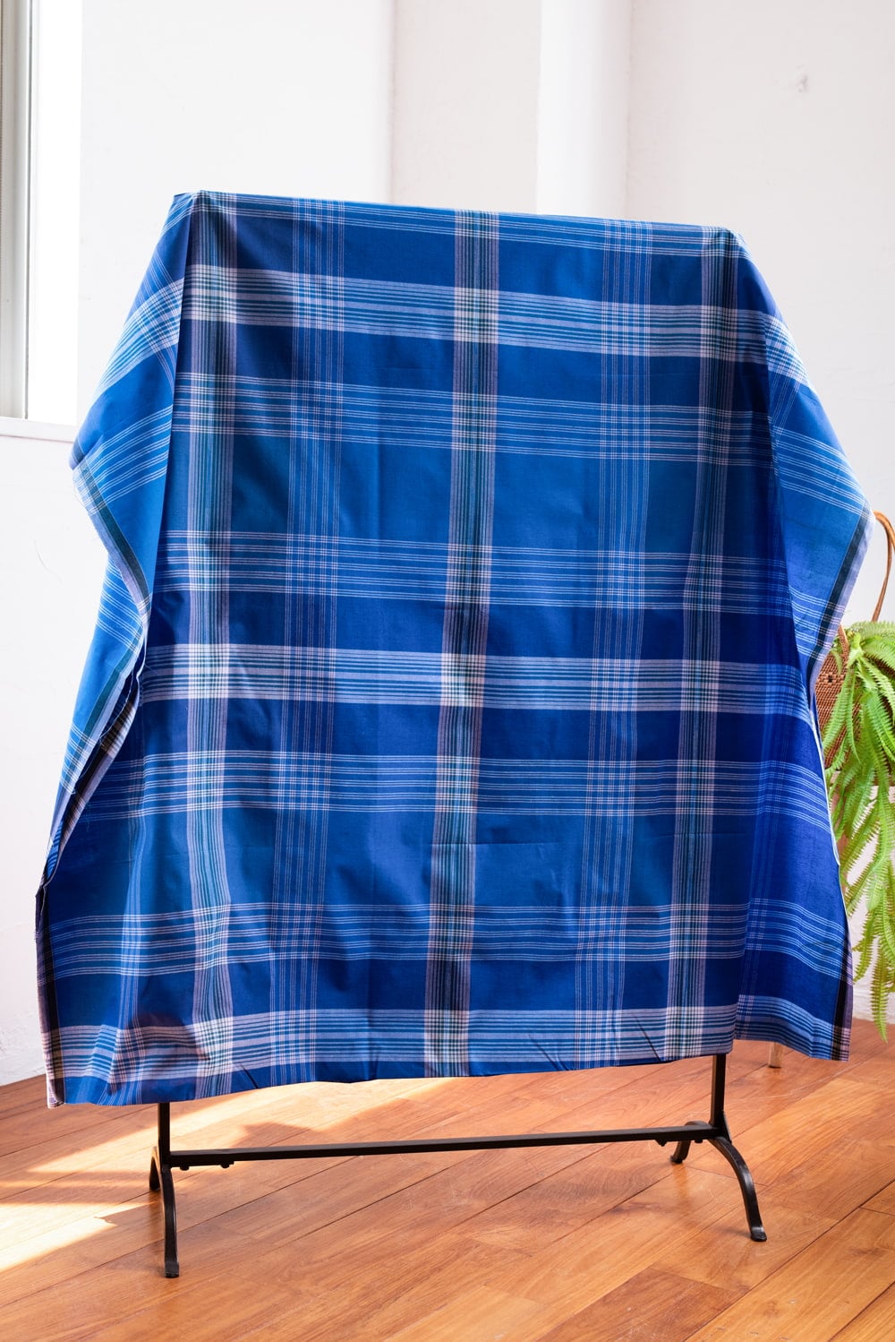 鮮やかなブルーが美しい マドラスチェックのルンギー【約120cm×約210cm】 通販店