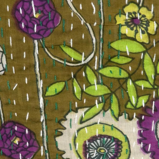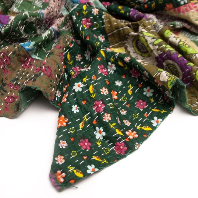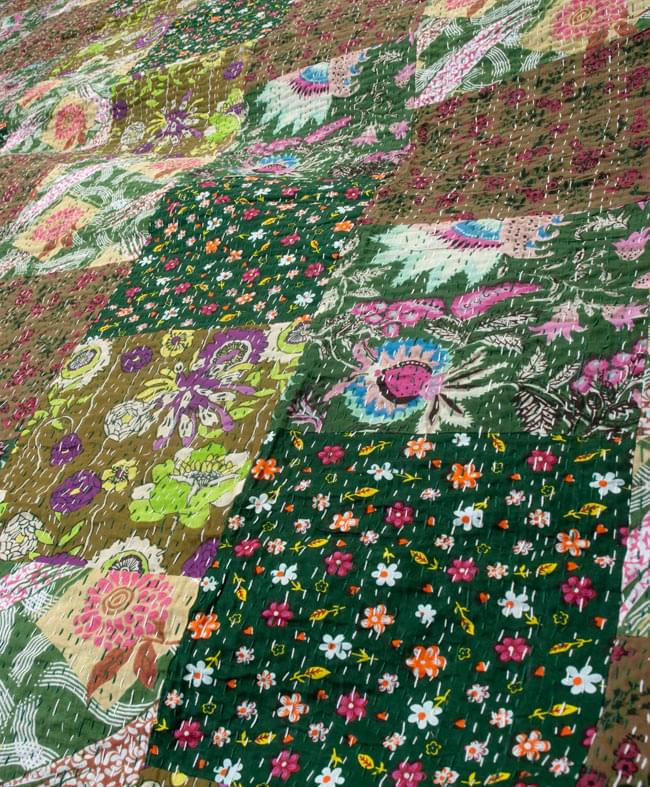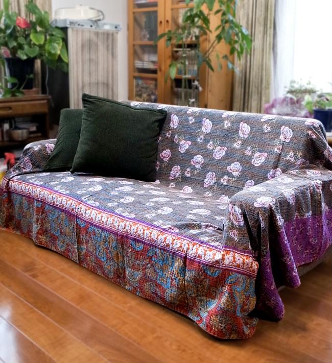 こちらの商品は、インドからやってきたラリーキルト(カンタ刺繍)の大判マルチクロスです。大きさがあるのでラグやベッドカバー、ソファーカバーやタペストリーなどへご利用いただけます。