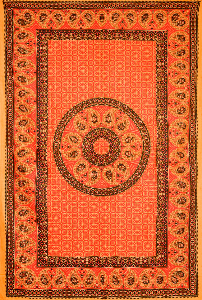 インドらしいモチーフが魅力的!大きな万能マルチクロスです。こちらは【選択A】の写真になります。ベッドカバーやソファーカバー、テーブルクロスや壁掛け、アウトドアでタープ代わりなどなど、アイデア次第で幅広く使えます!