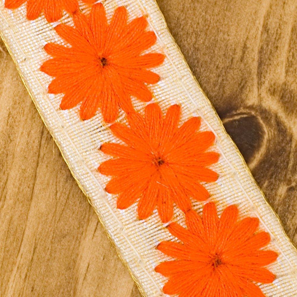 小花柄チロリアンテープ (メーター売り・幅 約2cm) - オレンジ