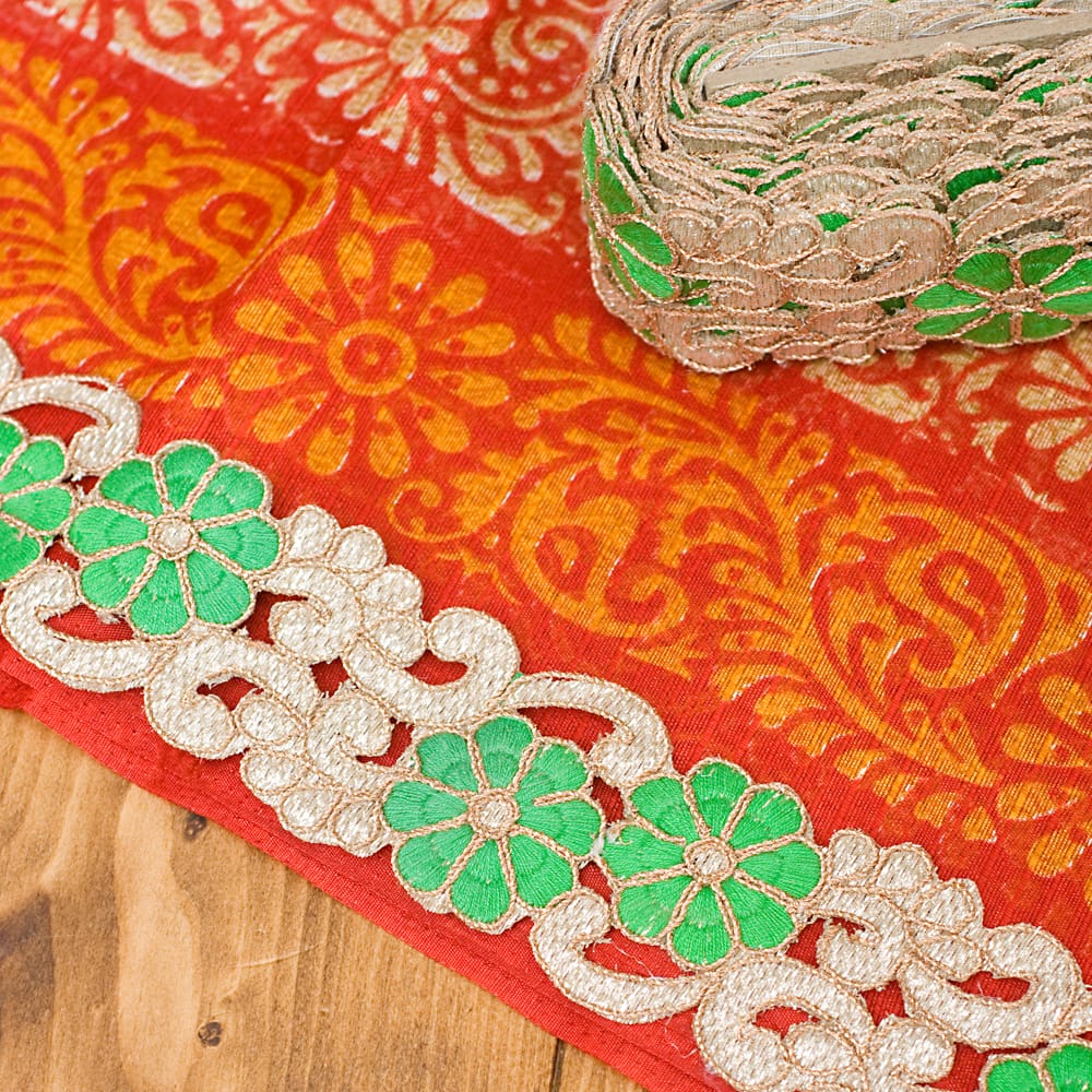 金糸刺繍チロリアンテープ (メーター売り・幅 約5cm) - グリーン 通販店