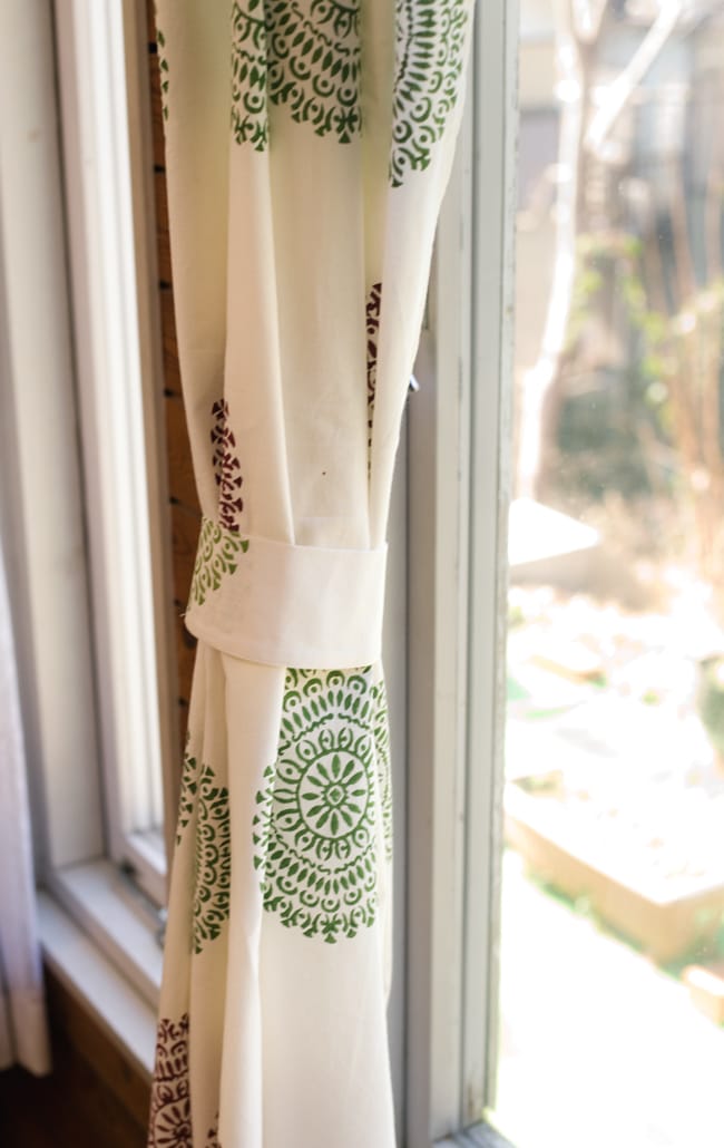 アジアのカーテンは取り付け部が加工されておらず、紐を結んで取付ということも多いのですが、こちらは一般的なカーテンフックで留められるようきちんと加工されております。それぞれのカーテンに合わせたカーテンタッセルも付いているので、収納の際も綺麗な状態でたたんでおけます。