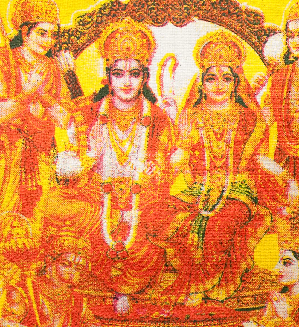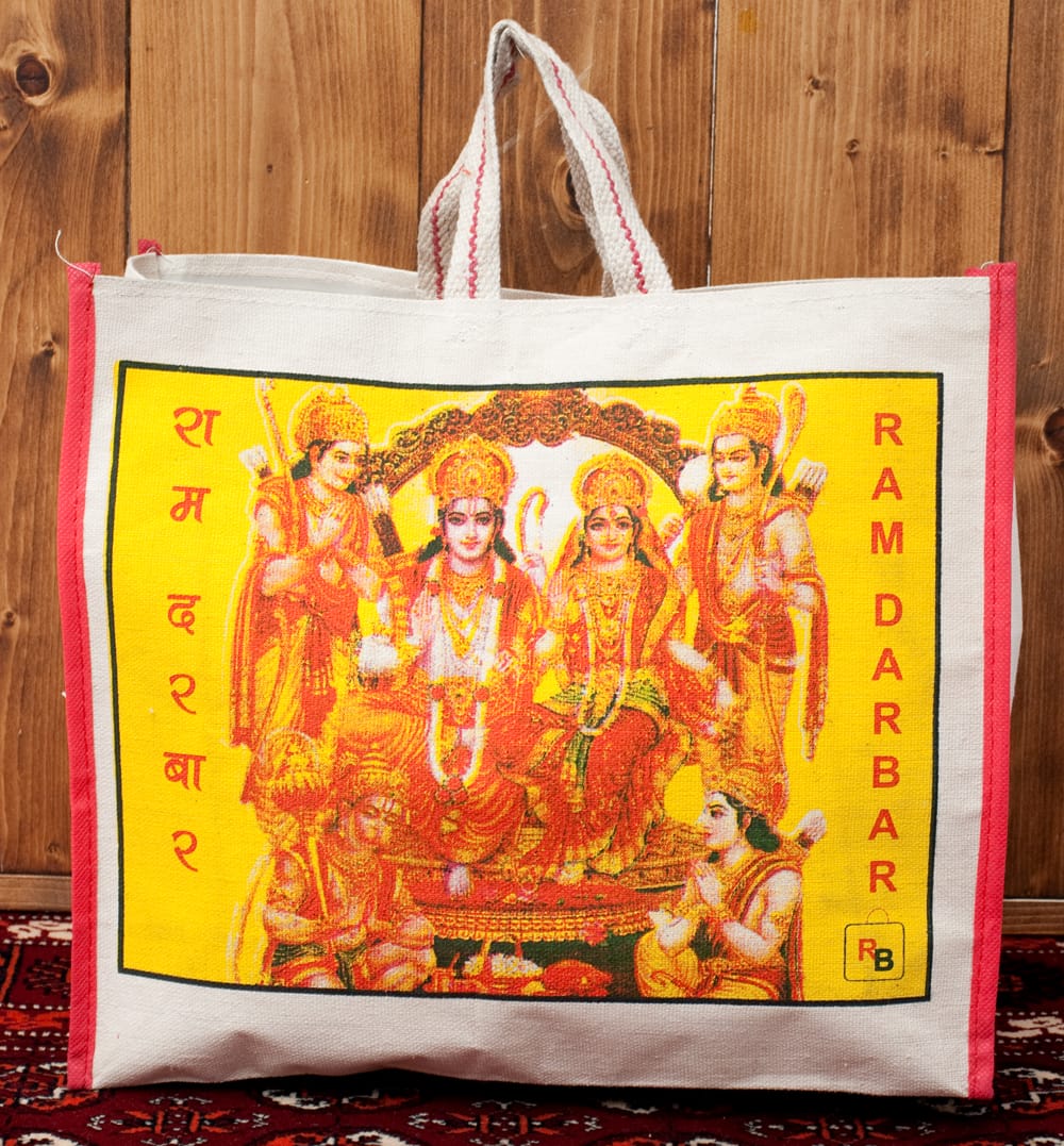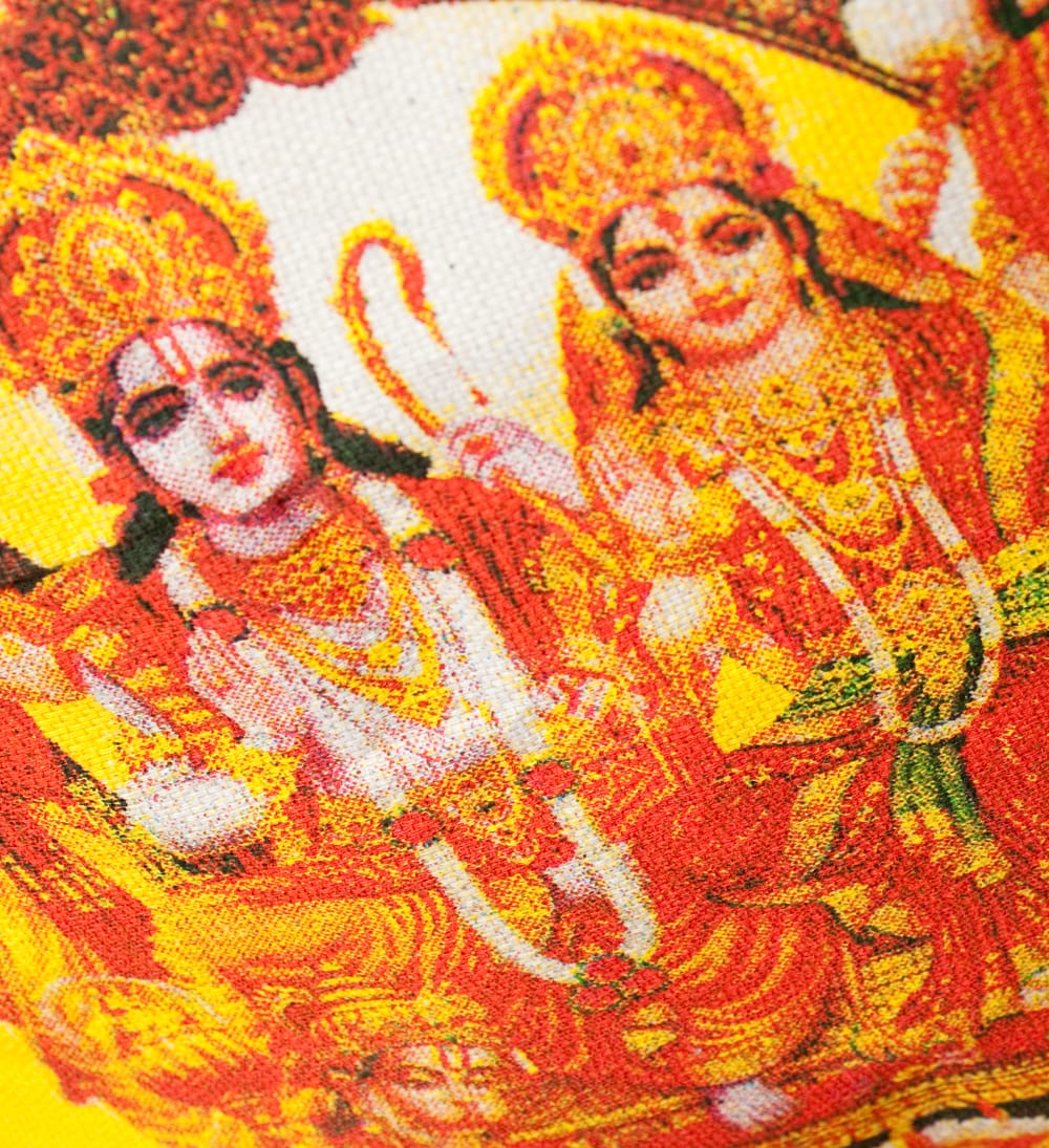 神様達がプリントされた帆布バッグ素敵です椅子に座っているのはシヴァとパールヴァティですかね(^_^)美男美女で良いですね!ハヌマーンらしい神様もいますね、市販の店にはないデザインが目を引きますね、買い物に出掛ける時エコバッグとして使いたいと思います(*^^*)ありがとうございました。