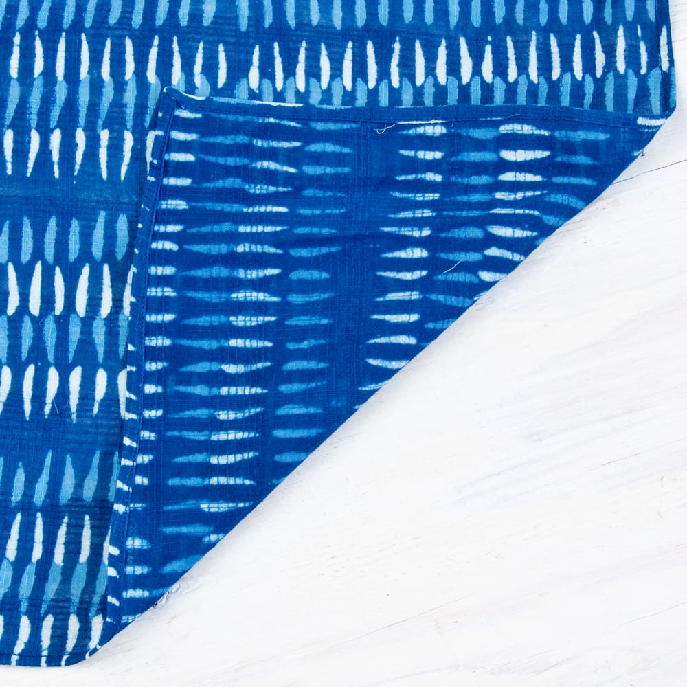 昔ながらの木版染め伝統模様布ハンカチ - ブルー