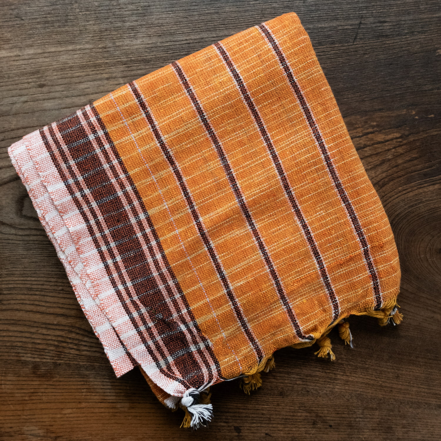 身に着けるもよし、雑巾にしてもよし、肌触りはそれなりですが気分が上がるインドカラーです。