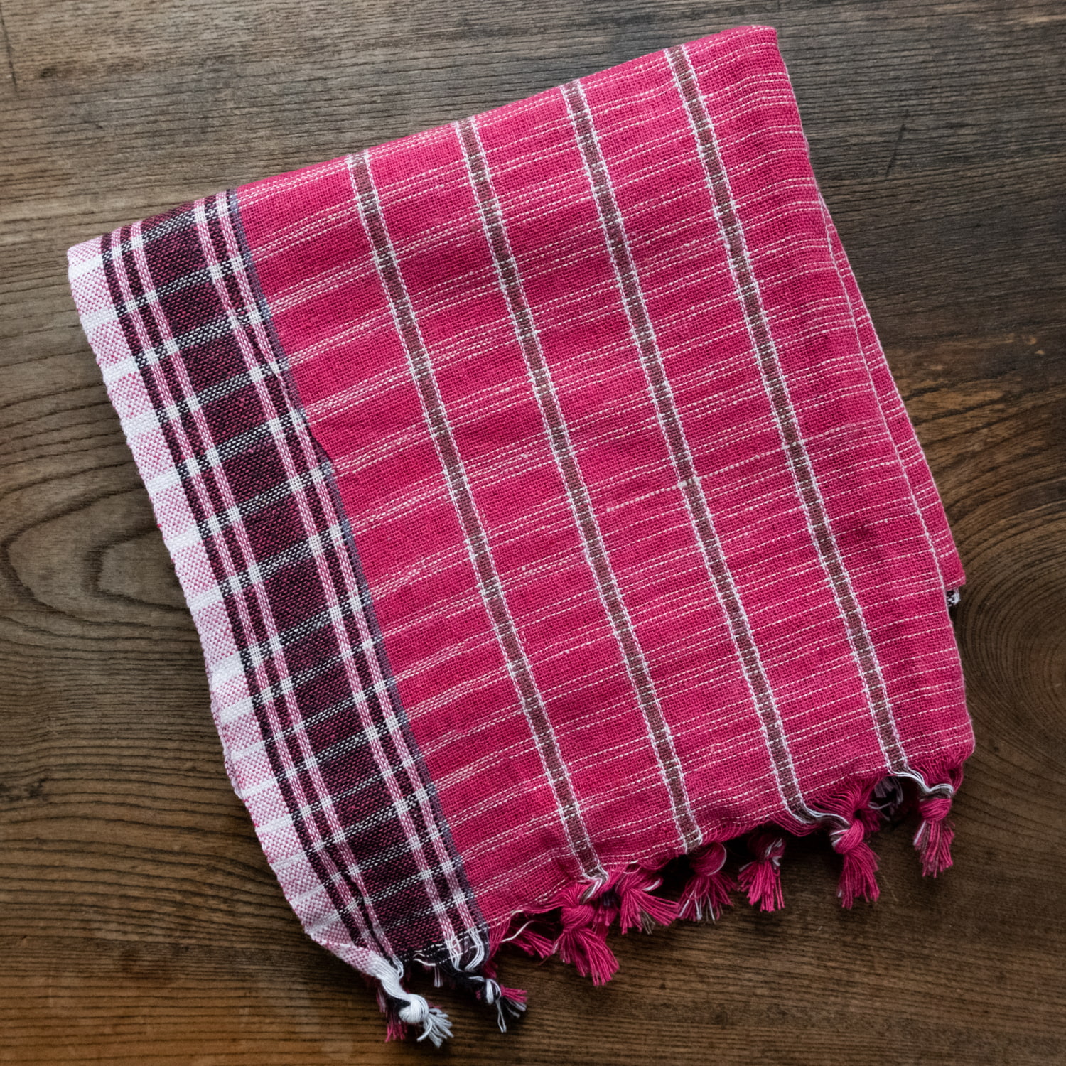 インドの生活感あふれる布、ガムチャと呼ばれる万能布で日本で言う手ぬぐいのような布です。シンプルでざっくりと編まれた鮮やかなチェック柄が可愛く、様々な用途にお使いいただけます。 現地では、祭壇に使用したり、頭に巻いたり、手拭きにしたり。色やサイズに合わせて何にでも◎ざっくりと編まれているから速乾性にも優れており、使えば使うほど、洗えば洗うほど生地が馴染んで柔らかくなってきます。お皿を拭いたり、目隠し布やランチョンマットのように広げて使用しても◎また、大きめサイズならクーラーの風よけや日焼け防止にも使用できます。