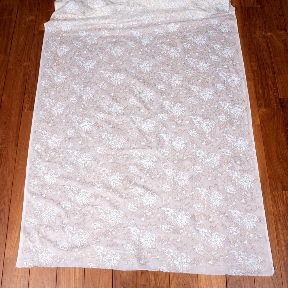 〔1m単位切り売り〕ジャイプル職人手作り 白生地×ゴールドプリントのボタニカルデザイン インド伝統の木版染め更紗生地〔幅約106cm〕の商品写真 6枚目 生地を広げてみたところです。横幅もしっかりあります。注文個数に応じた長さにカットしてお送りいたします。