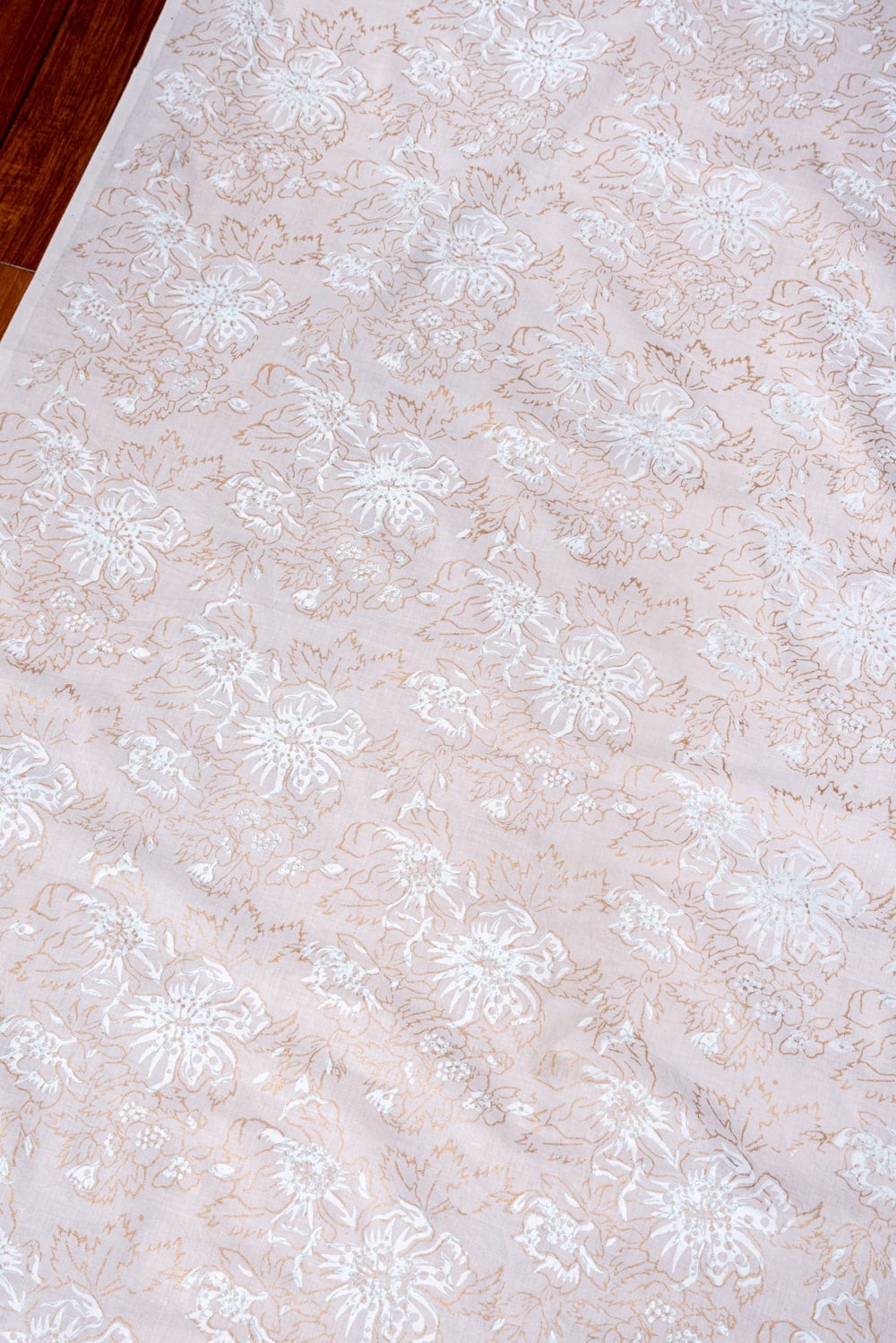 〔1m単位切り売り〕ジャイプル職人手作り 白生地×ゴールドプリントのボタニカルデザイン インド伝統の木版染め更紗生地〔幅約106cm〕の写真