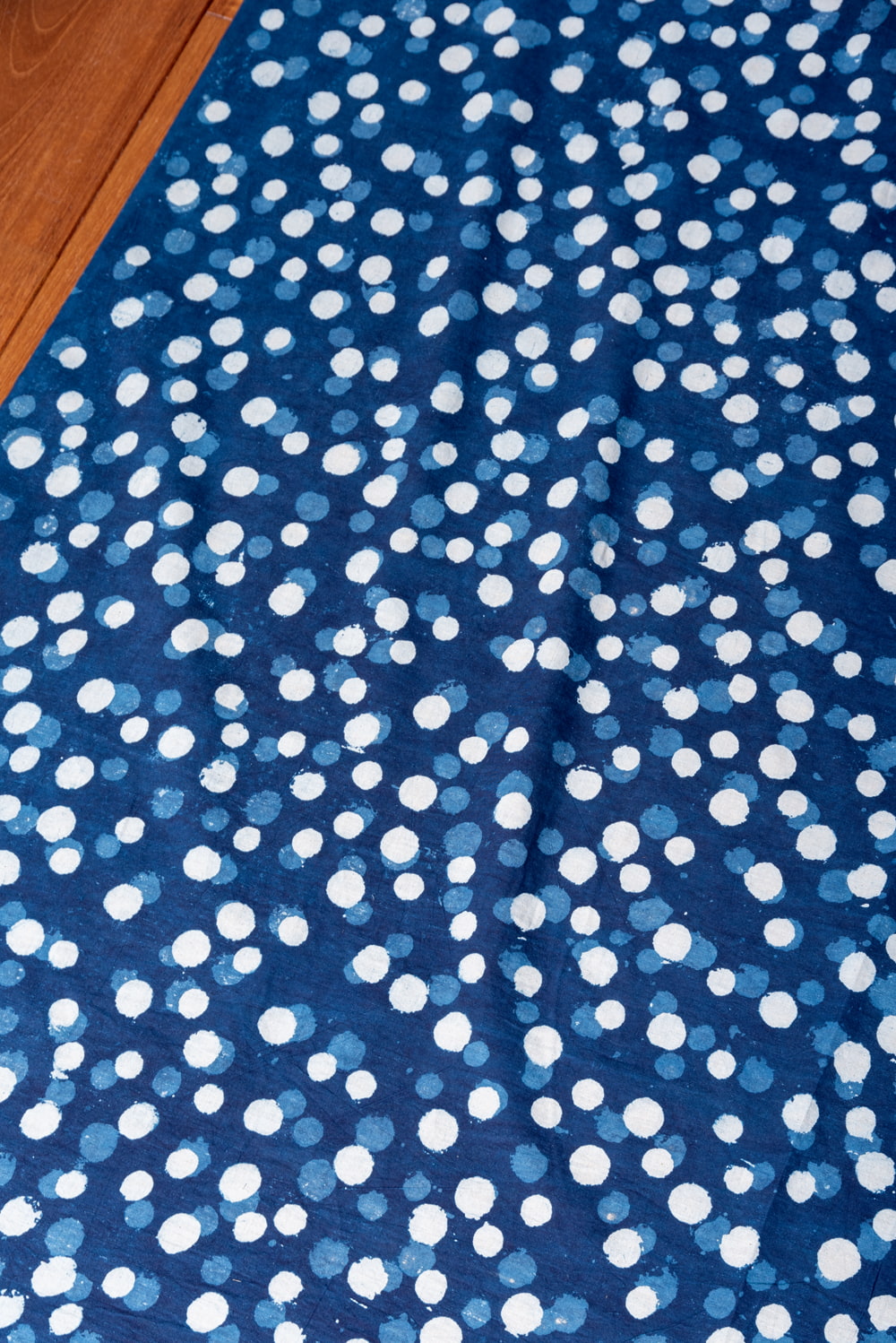 〔1m単位切り売り〕伝統息づく南インドから 昔ながらの木版インディゴ藍染布 - 水玉模様〔幅約111.5cm〕