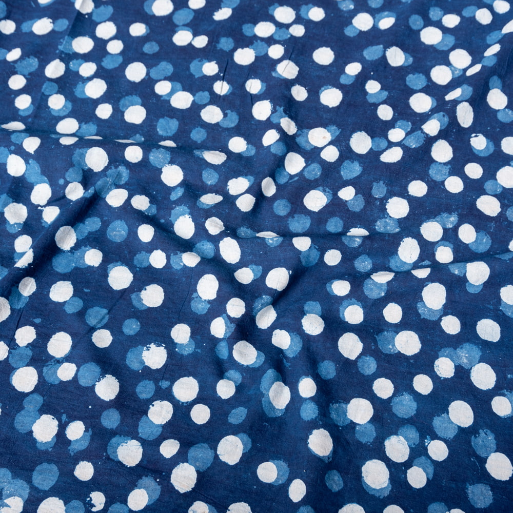 〔1m単位切り売り〕伝統息づく南インドから 昔ながらの木版インディゴ藍染布 - 水玉模様〔幅約111.5cm〕 通販店