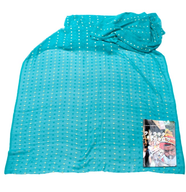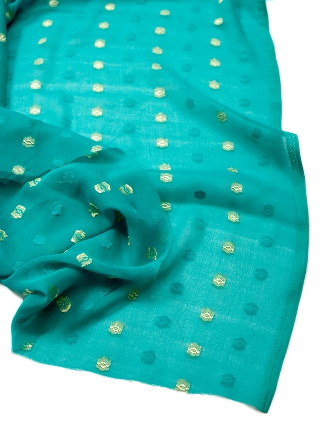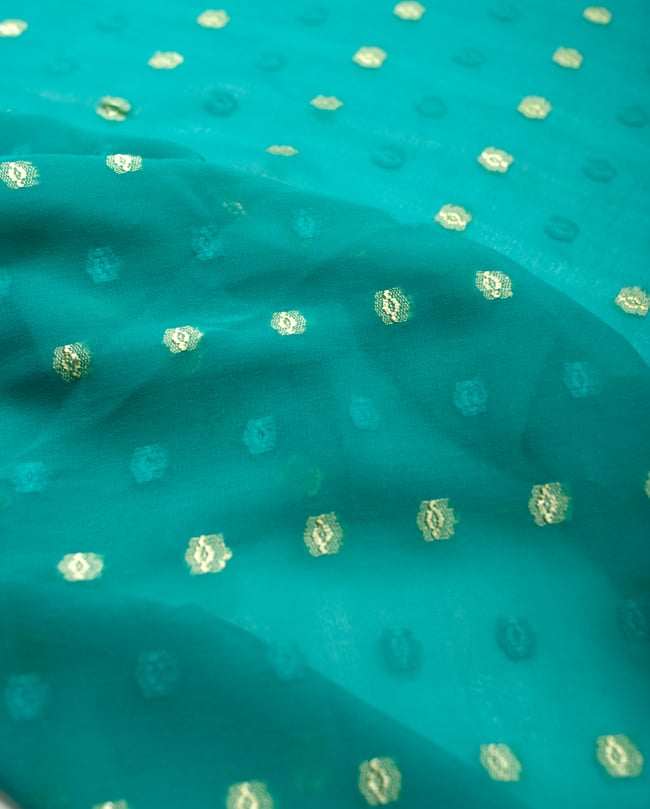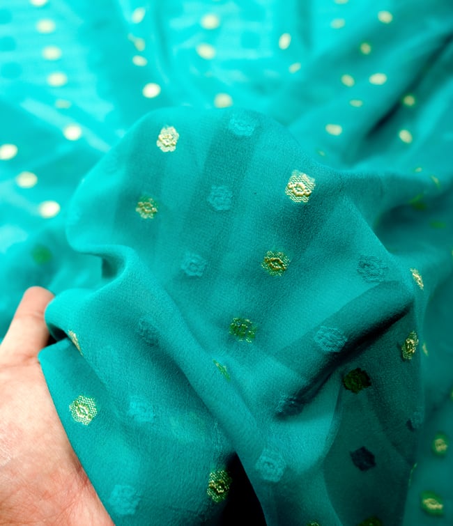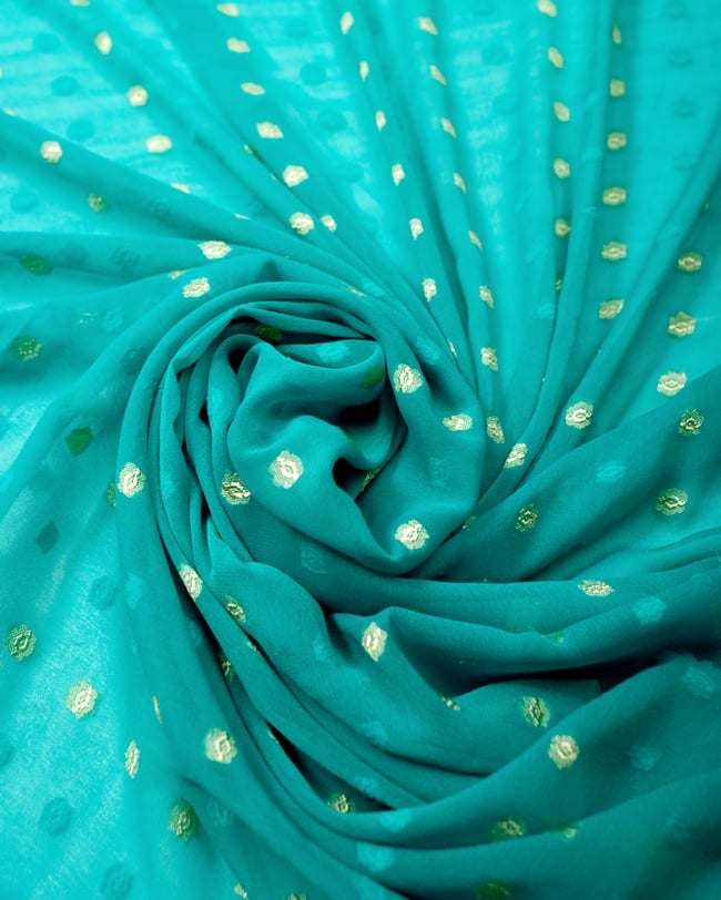 〔1m単位切り売り〕金糸コイン柄のシフォン生地布〔幅約111cm〕 - ターコイズ 通販店