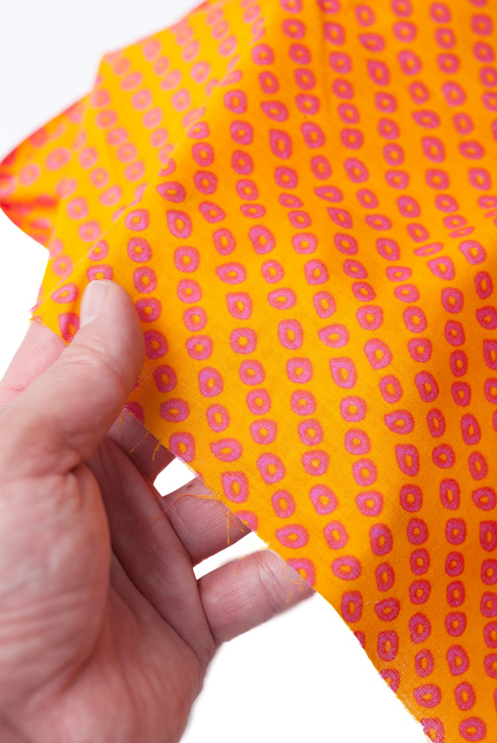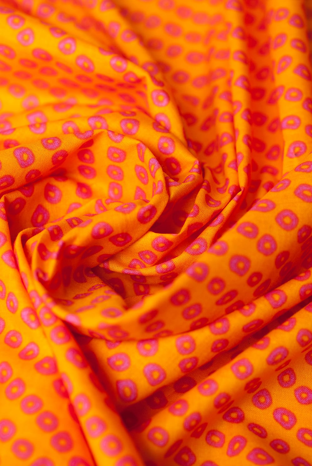 〔1m単位切り売り〕インドの絞り染め風プリント布 - 黄・オレンジ系〔幅約106cm〕 通販店
