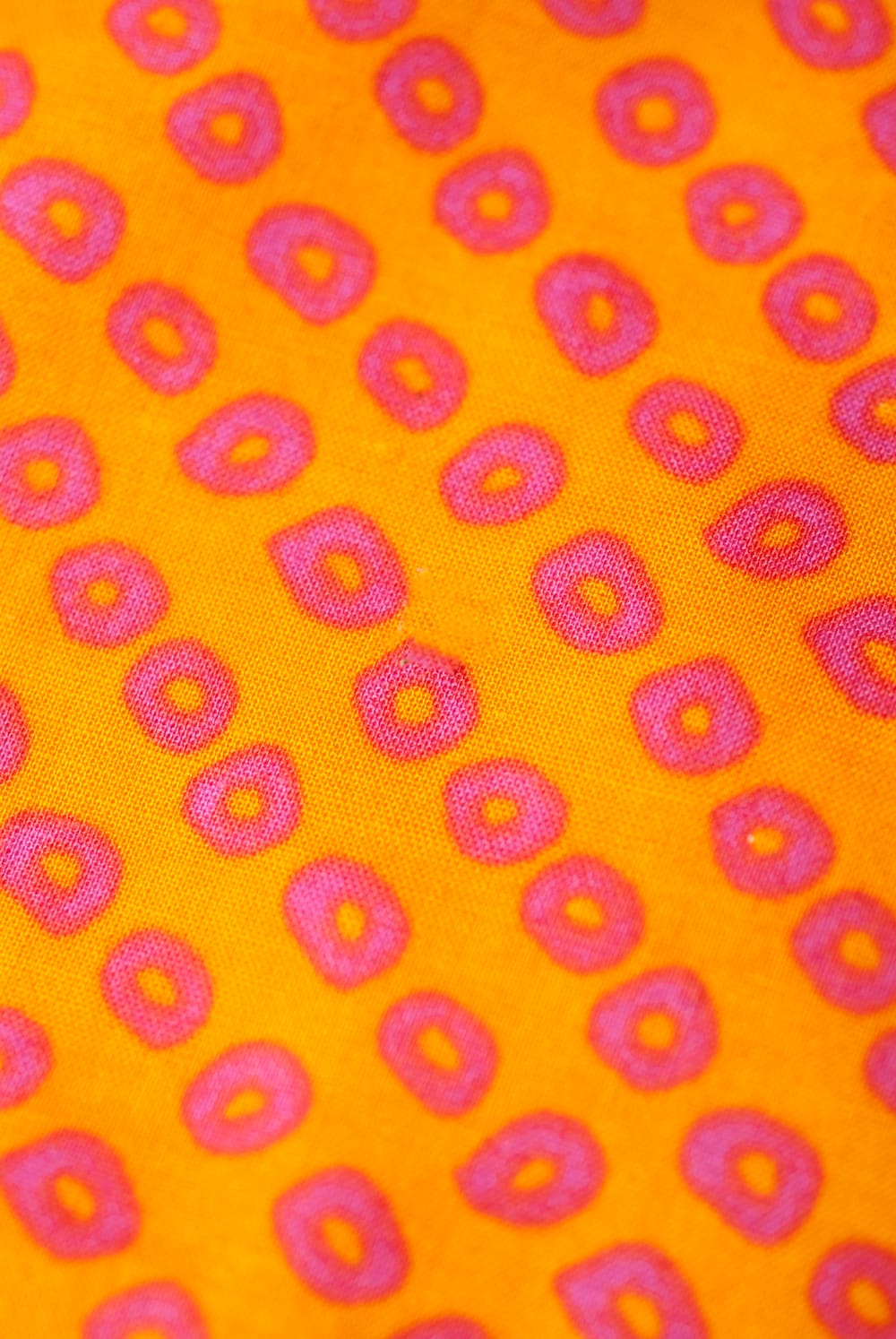 〔1m単位切り売り〕インドの絞り染め風プリント布 - 黄・オレンジ系〔幅約106cm〕