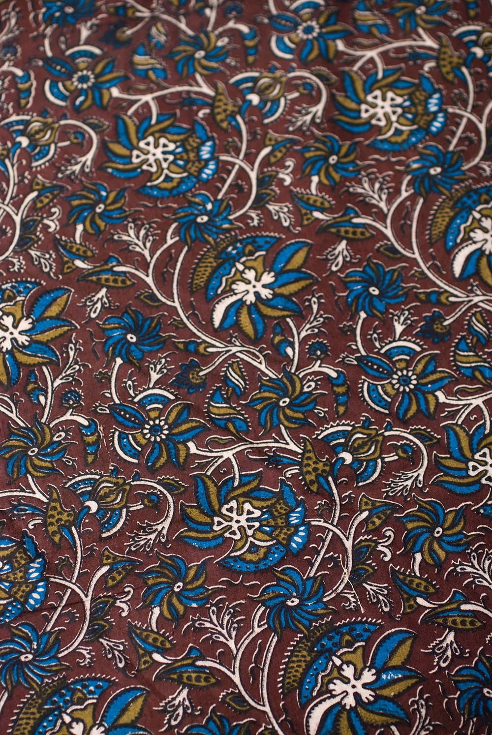 〔1m単位切り売り〕南インドの花柄コットン布〔幅約114cm〕
