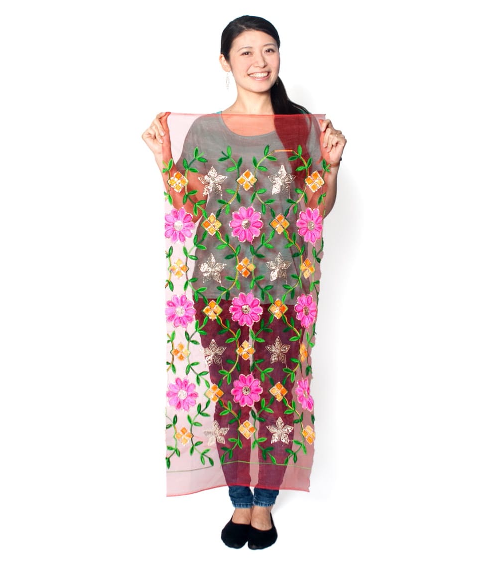 〔50cm切り売り〕更紗とペイズリー刺繍のメッシュ生地布〔101cm〕 - カラフルの同一カテゴリ商品