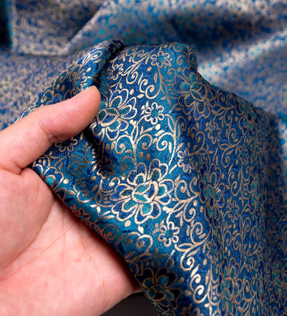 伝統的な紋様とインドらしい鮮やかなカラーリングがマッチングした素敵な布です。色合いが美しく、手芸用の布としてはもちろんインテリア用のカバーや飾り布として様々な場所でお使いいただけます。ソファカバーやカーテン、等々色々な使いみちが考えられますね。陰影が美しいので、オリジナルのスカーフや壁飾りにしても素敵です。
