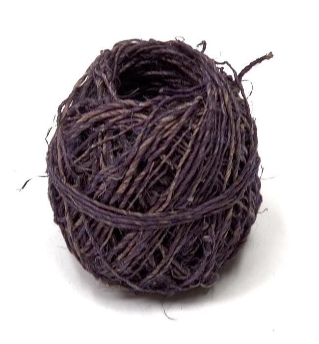 手芸店などであるような綺麗なヘンプ糸ではなく、あまり精製していない、ごそっとした感じのネパール製ヘンプ糸です。こちらは、細糸の小玉になっています。このヘンプ糸はネパールの山間部に自生しているヘンプを人間の手で刈り取り、繊維にした本当の意味でエコロジーな素材。工業製品にはない糸の質感や糸の太さなど、手作りの魅力であふれています。アクセサリーや小物など貴方次第で色々な物をお作りいただけると思います。