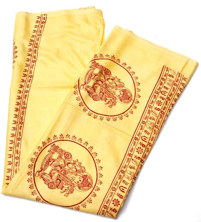ヒンドゥー教の大聖地バラナシ特産のラムナミ(神様布)。布地がしっかりしているので耐久性抜群!! 壁掛けとして使用したとたん、あなたの部屋の雰囲気は一変。これ一枚でどこでも印度風になる便利な布です。壁掛けの他、マフラー、ショール等色々使用できます。インド現地買い商品ですので、多少ほつれや汚れがある場合があります。傷もちょっとしたものならばインドものならではの味、になると思います。きちんと検品しますので、ひどいものは当然お送りしませんが、日本の商品みたいにぴかぴかではない事をご了承ください。また、神様模様は、シバ、ガネーシャ、クリシュナ等の中からアソートでお届け致します。