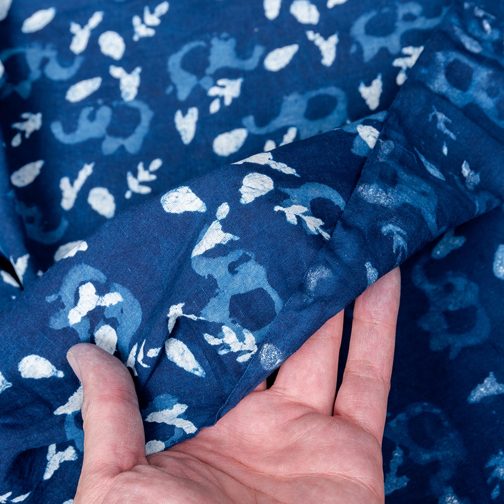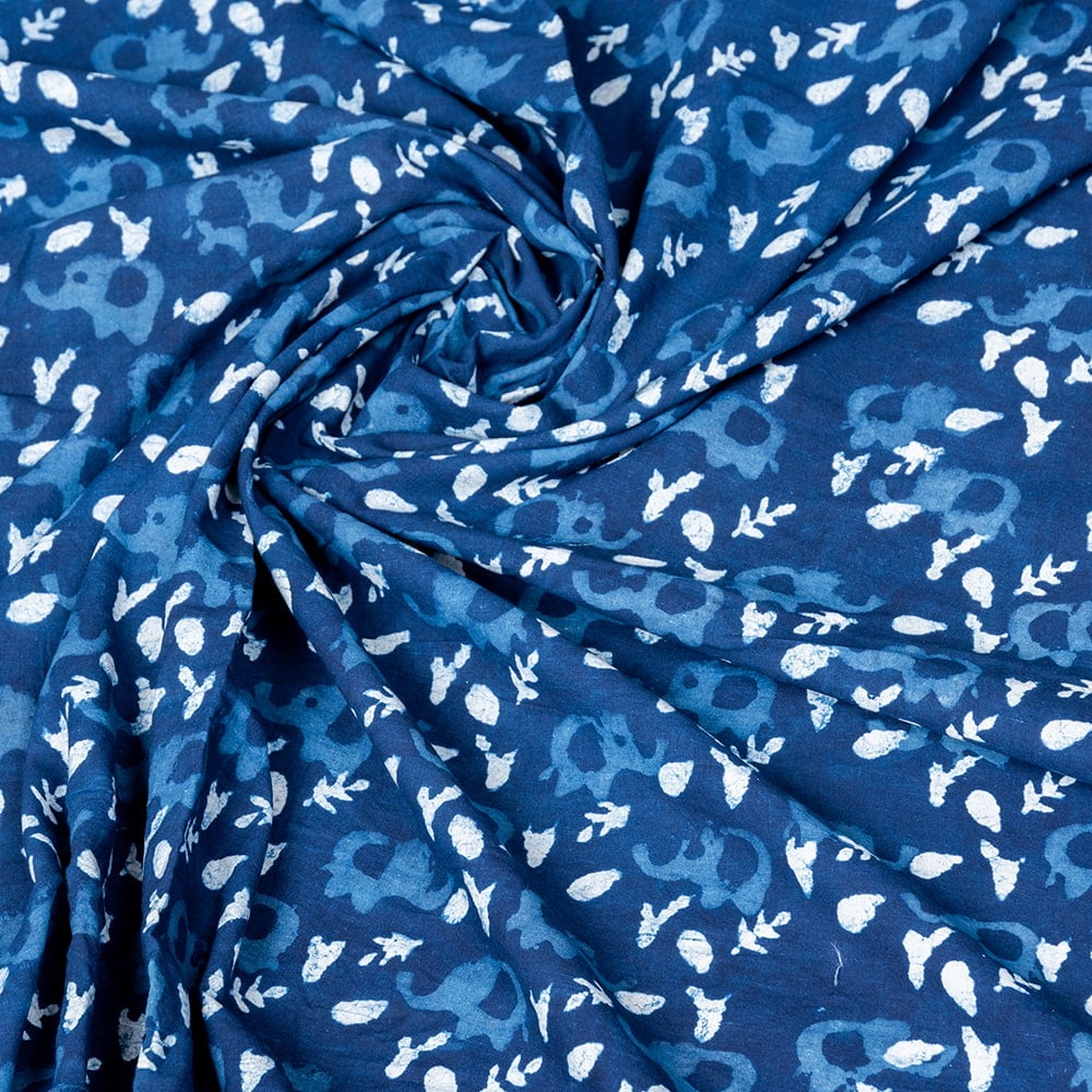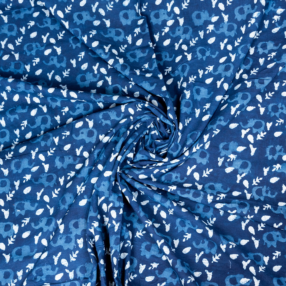 【5個セット】〔1m単位切り売り〕インドの伝統息づく 昔ながらの木版インディゴ藍染布 象さん ネイビー系〔幅約113cm〕