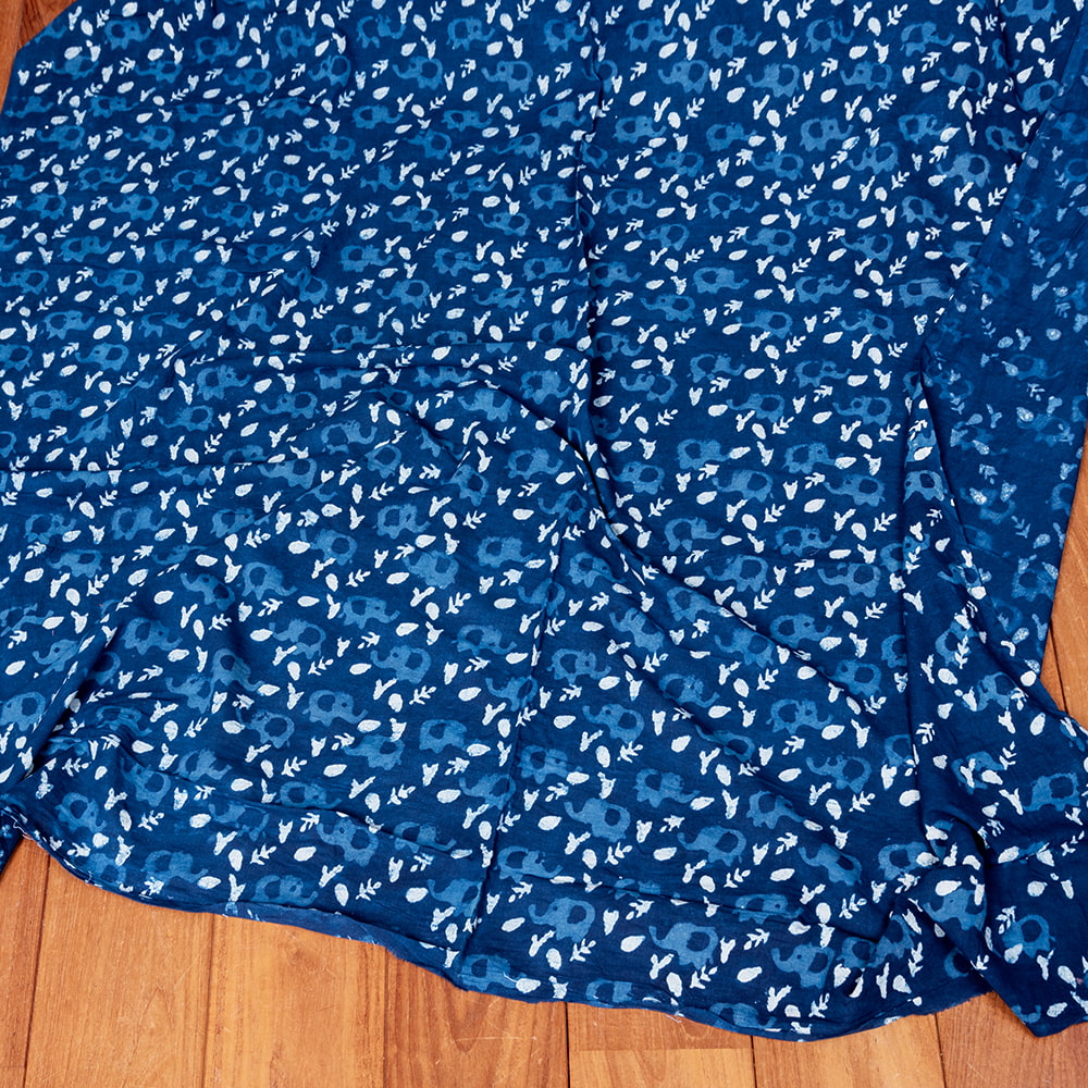 〔1m単位切り売り〕インドの伝統息づく 昔ながらの木版インディゴ藍染布 象さん ネイビー系〔幅約113cm〕 x 5個