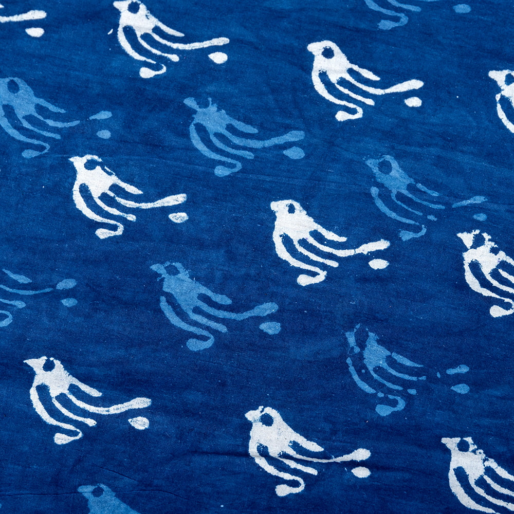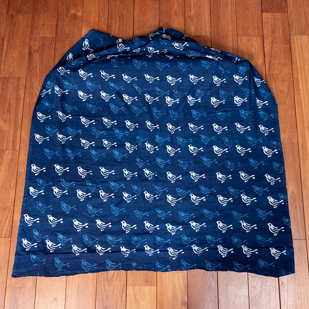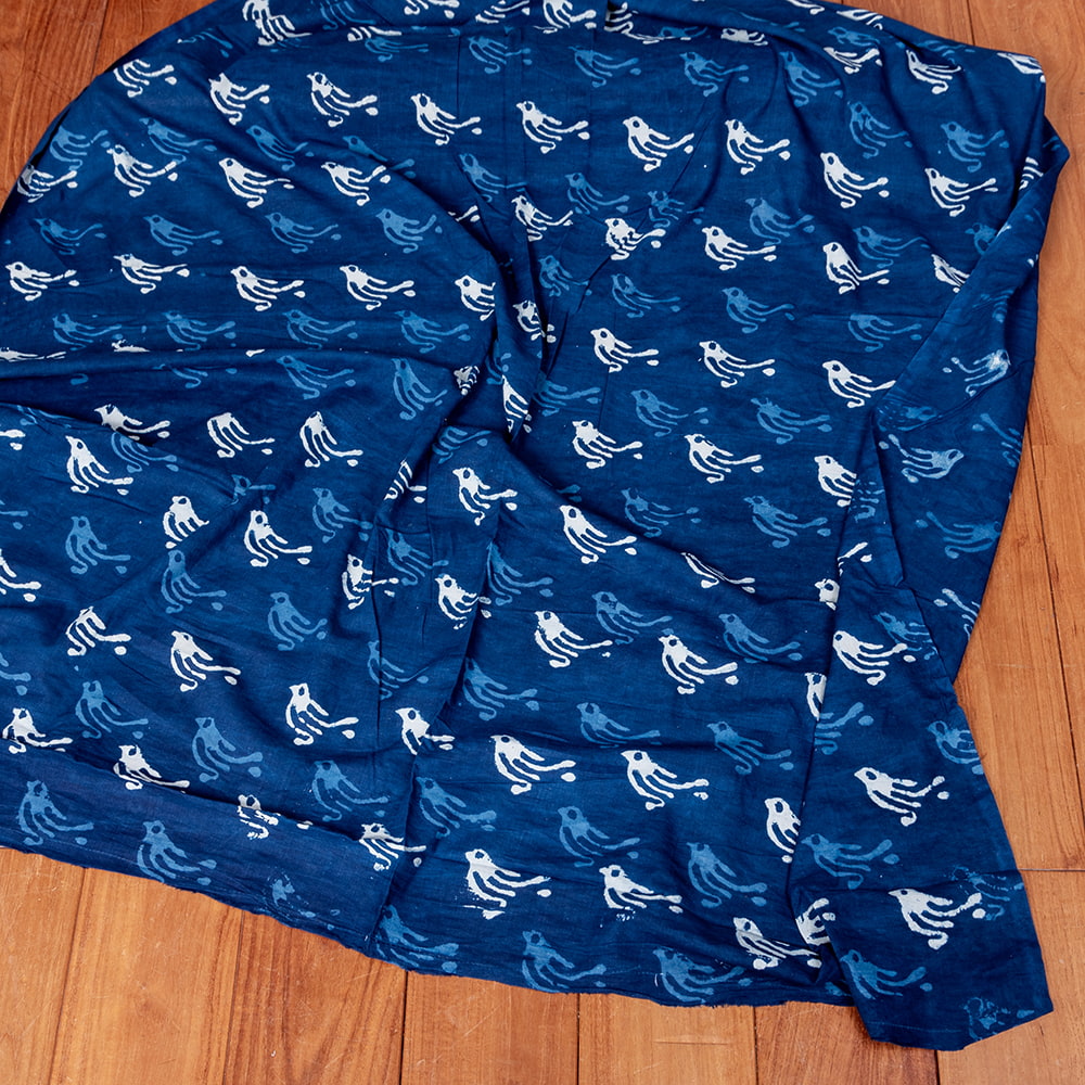 〔1m単位切り売り〕インドの伝統息づく 昔ながらの木版インディゴ藍染布 小鳥 ネイビー系〔幅約111cm〕 x 5個