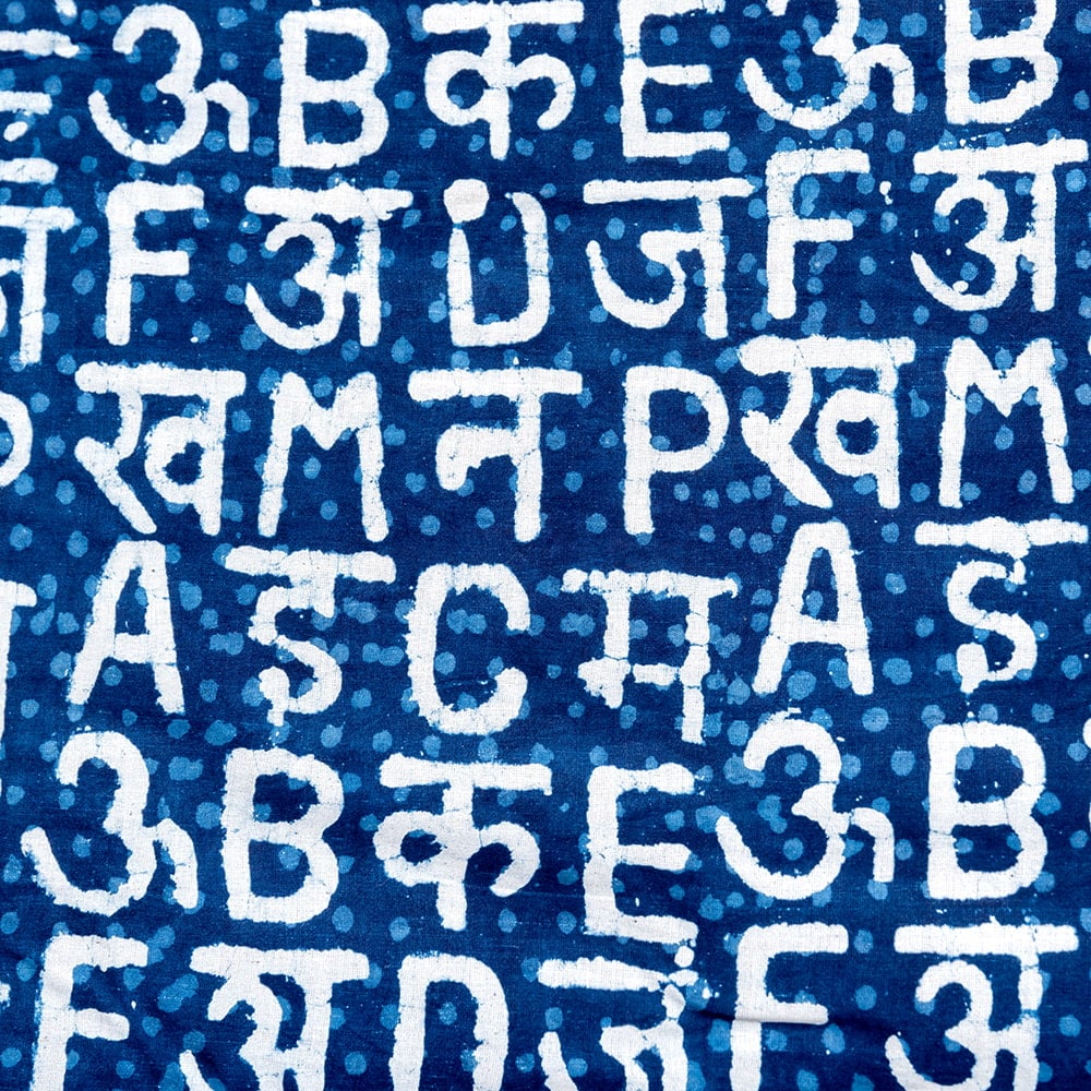 【5個セット】〔1m単位切り売り〕インドの伝統息づく 昔ながらの木版インディゴ藍染布 デーヴァナーガリー文字とアルファベット ネイビー系〔幅約111cm〕