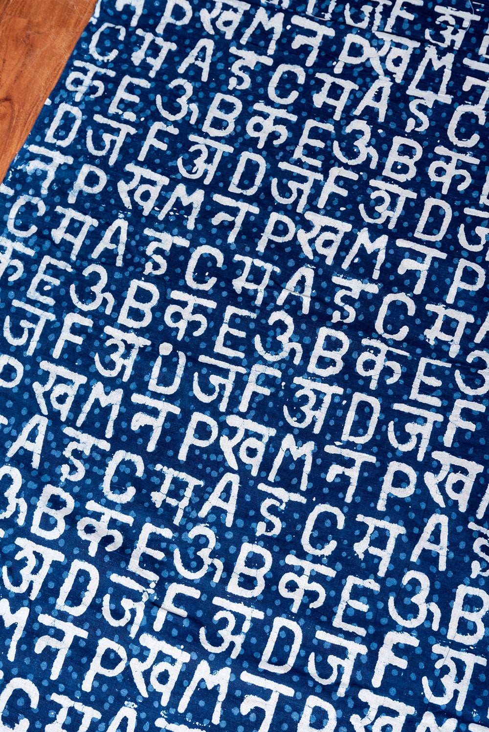 〔1m単位切り売り〕インドの伝統息づく 昔ながらの木版インディゴ藍染布 デーヴァナーガリー文字とアルファベット ネイビー系〔幅約111cm〕 x 5個