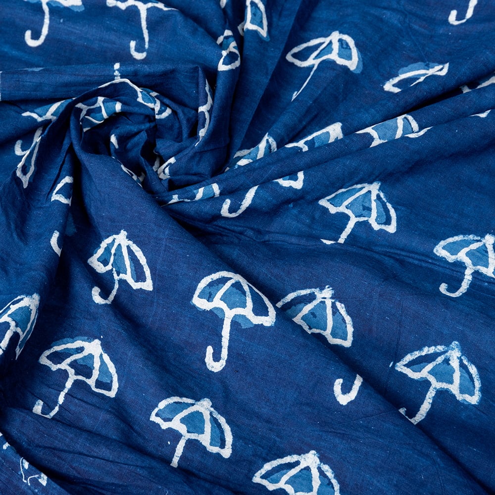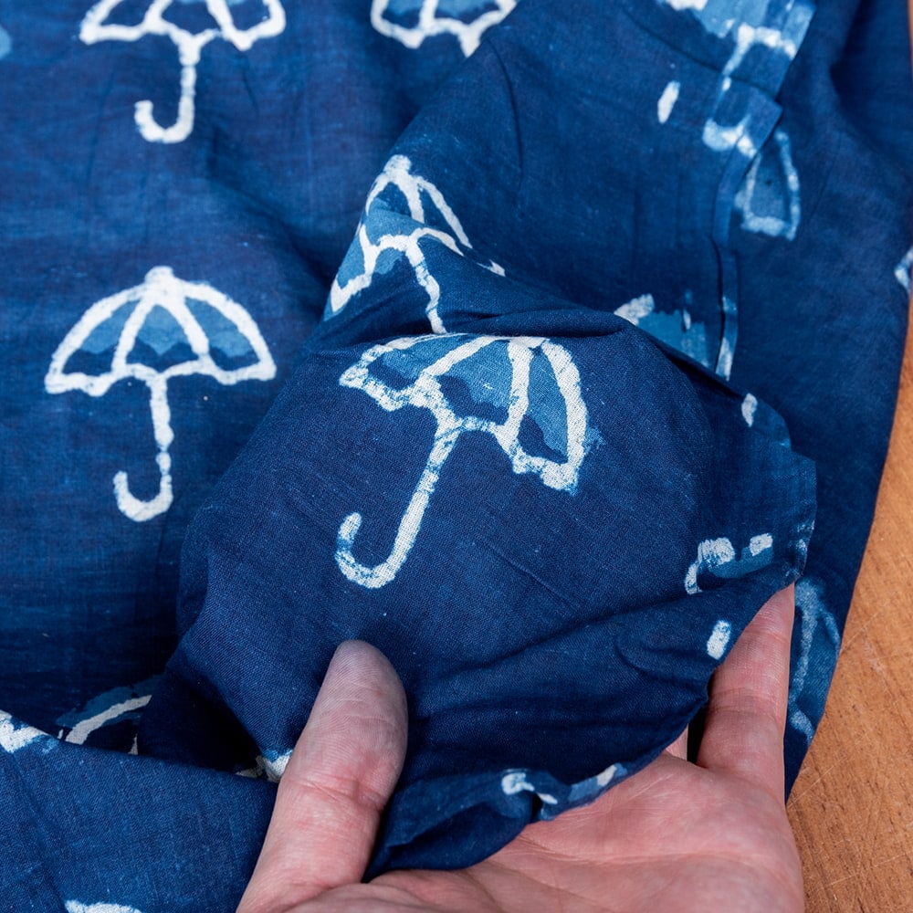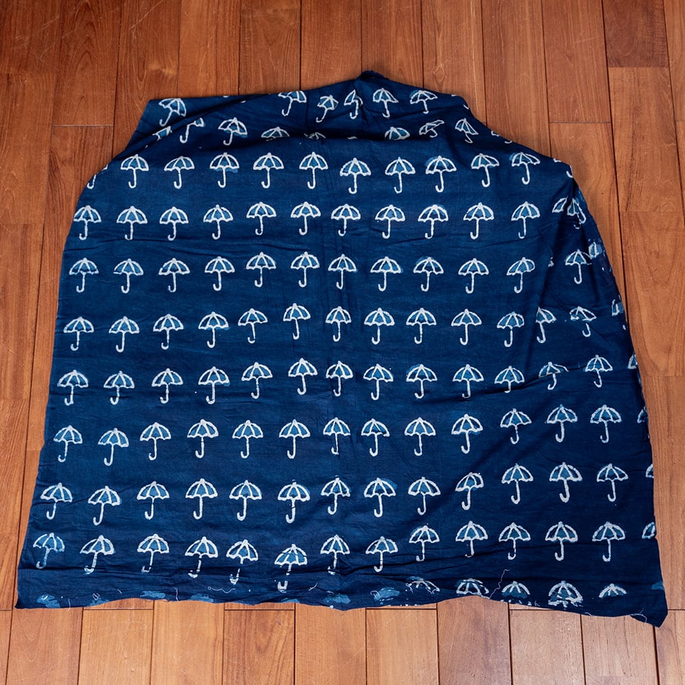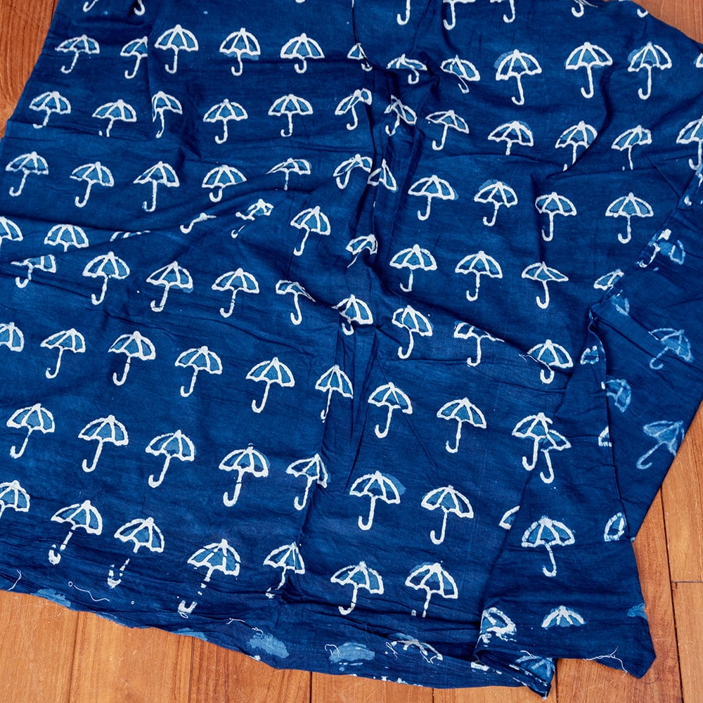 【5個セット】〔1m単位切り売り〕インドの伝統息づく 昔ながらの木版インディゴ藍染布 パラソル ネイビー系〔幅約110cm〕