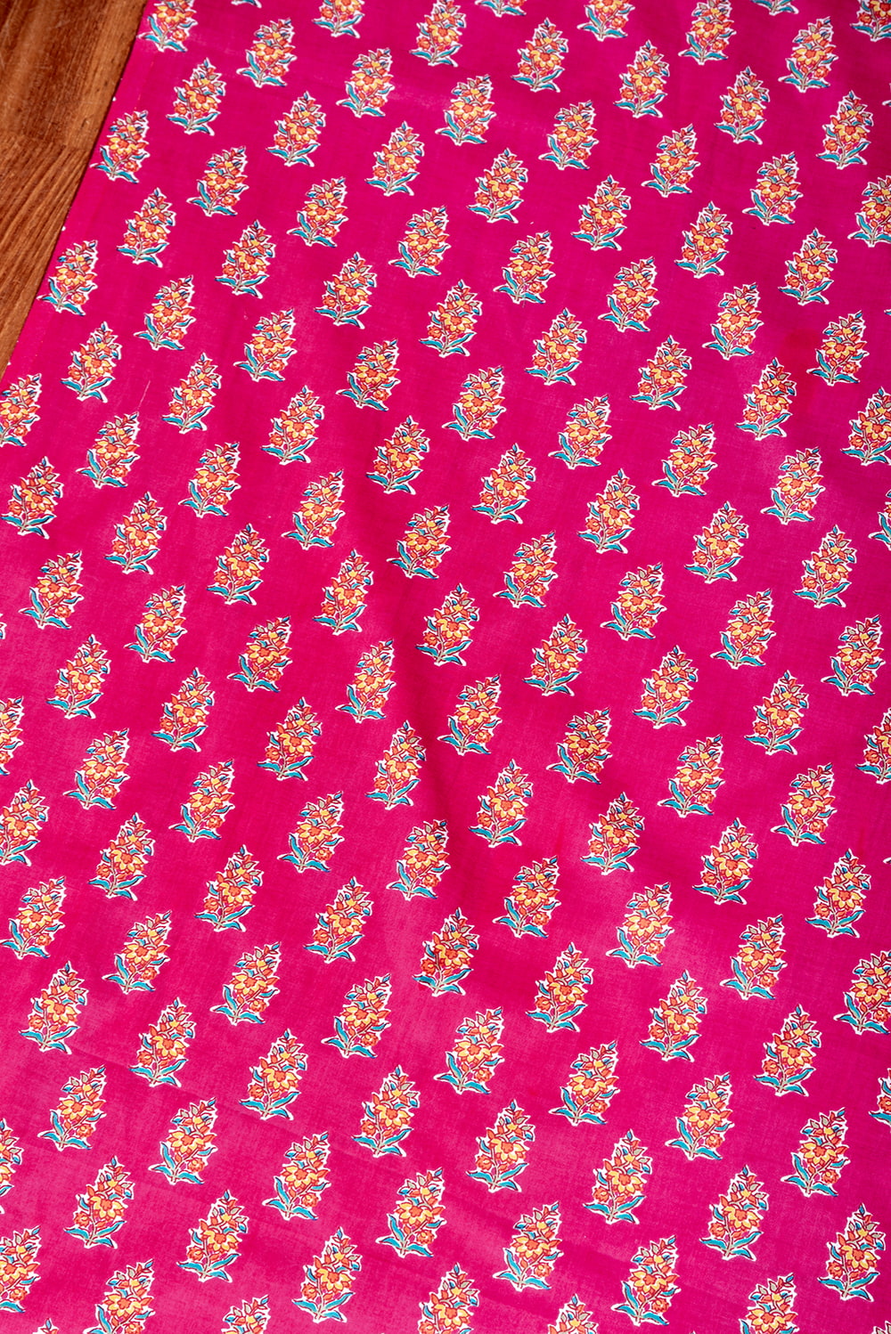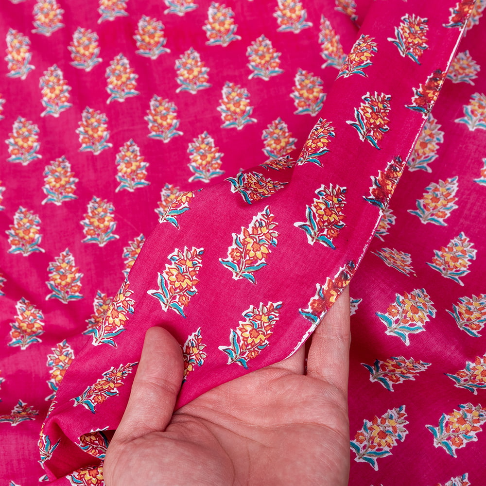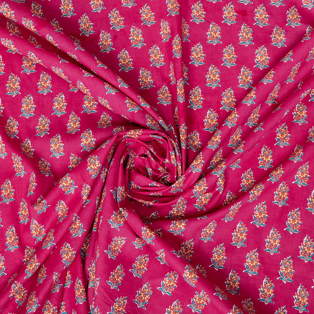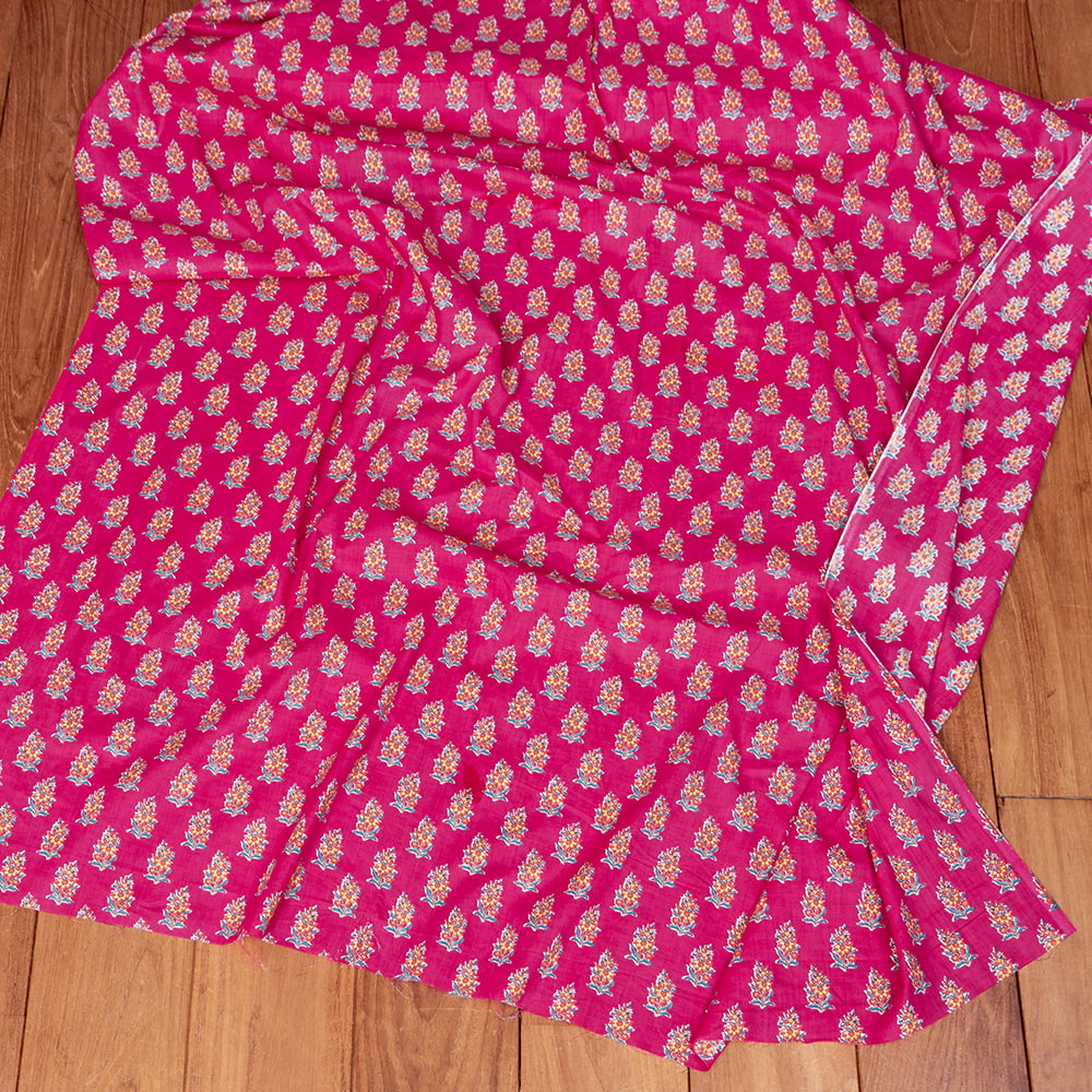 〔1m単位切り売り〕テキスタイルの伝統息づくインドから 昔ながらのボタニカル柄布 ビビッドピンク系〔幅約107cm〕 x 5個