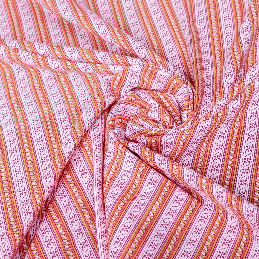 【5個セット】〔1m単位切り売り〕南インドのストライプ布 ピンク系〔幅約108cm〕