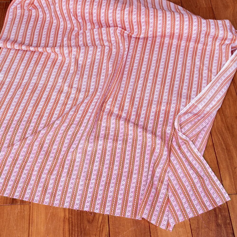 〔1m単位切り売り〕南インドのストライプ布 ピンク系〔幅約108cm〕 x 5個