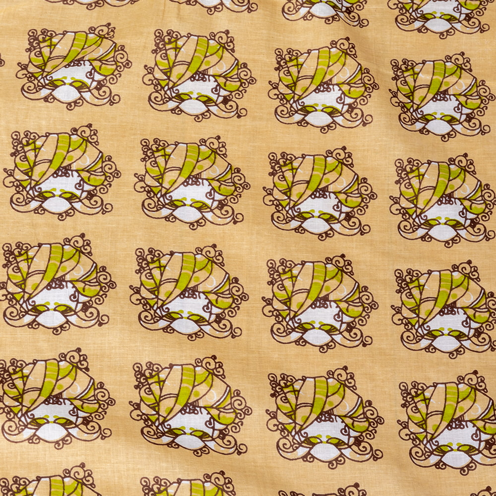 〔1m単位切り売り〕インドの伝統と不思議が融合 おもしろデザイン布 ターバンおじさま柄〔幅約109cm〕 x 5個