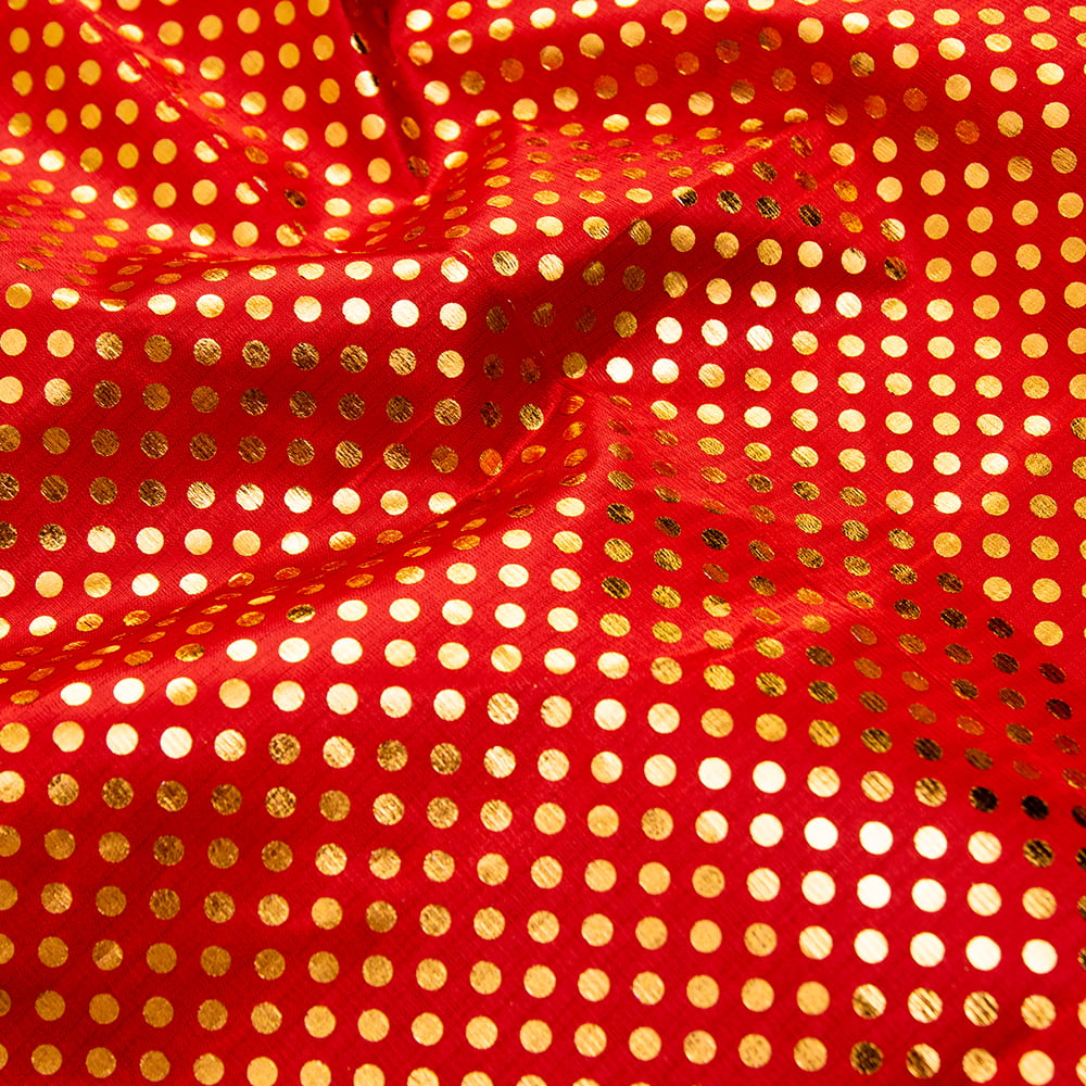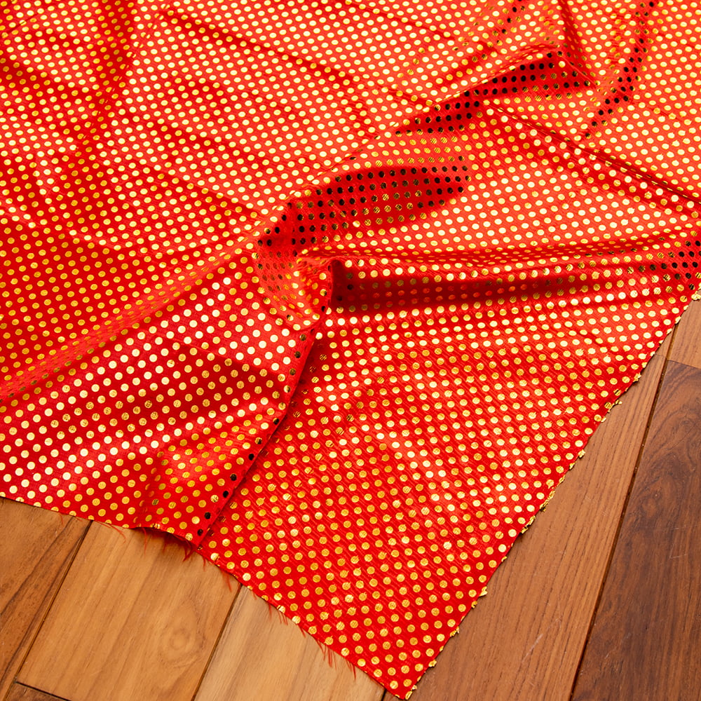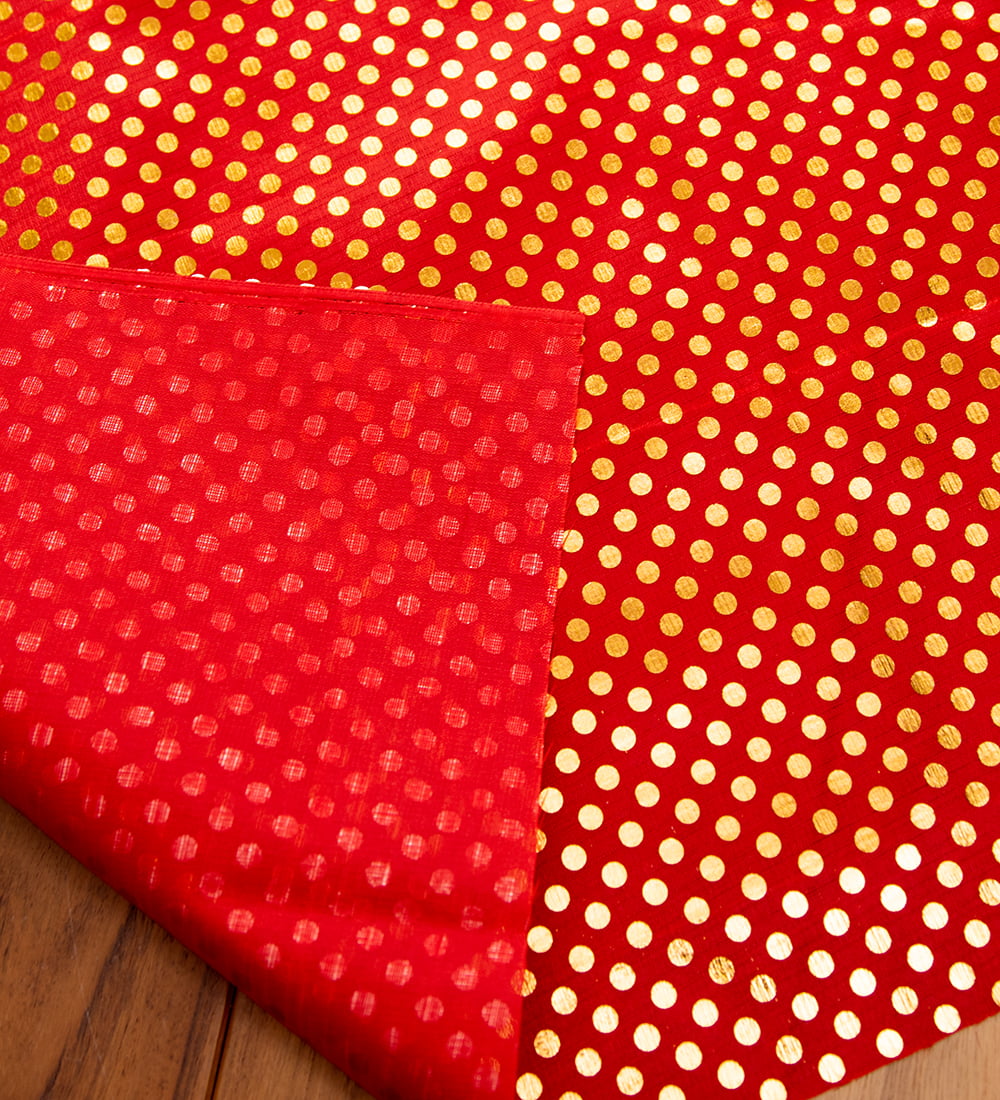 【3個セット】〔1m弱〕インドの伝統柄ゴールドプリント光沢布〔幅約105cm〕 ドット柄 通販店