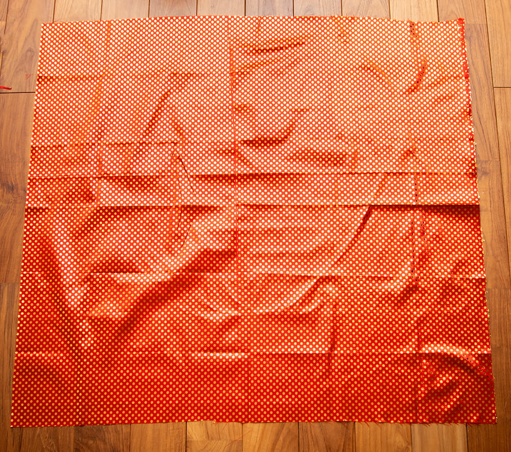 光の加減で表情を変えるインドらしい光沢生地に、伝統的な紋様がマッチングした素敵な布です。色合いが美しく、手芸用の布としてはもちろんインテリア用のカバーや飾り布として様々な場所でお使いいただけます。ソファカバーやカーテン、等々色々な使いみちが考えられますね。