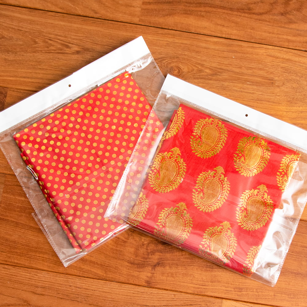 【3個セット】〔1m弱〕インドの伝統柄ゴールドプリント光沢布〔幅約105cm〕 ドット柄