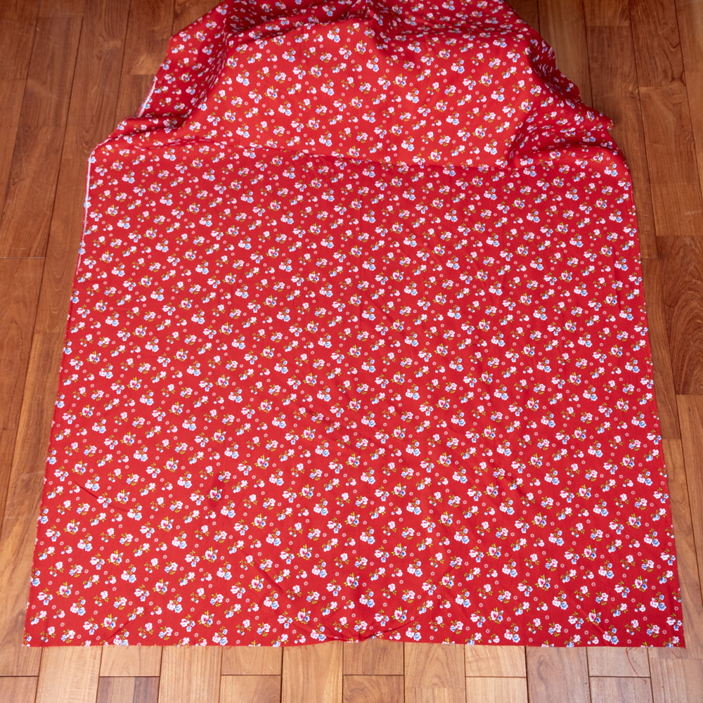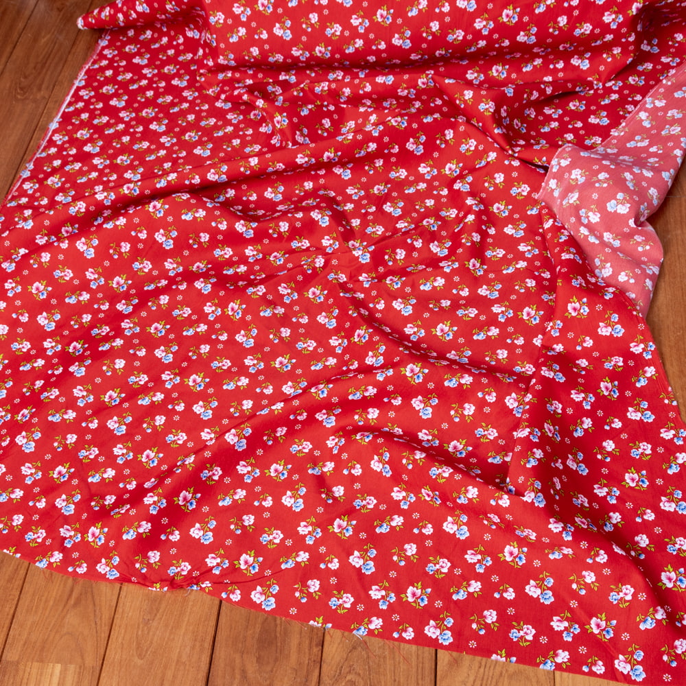〔1m単位切り売り〕アジアのレトロ小花柄ファブリック ヴィンテージ風 昭和レトロ〔約162.5cm〕 - レッド x 3個