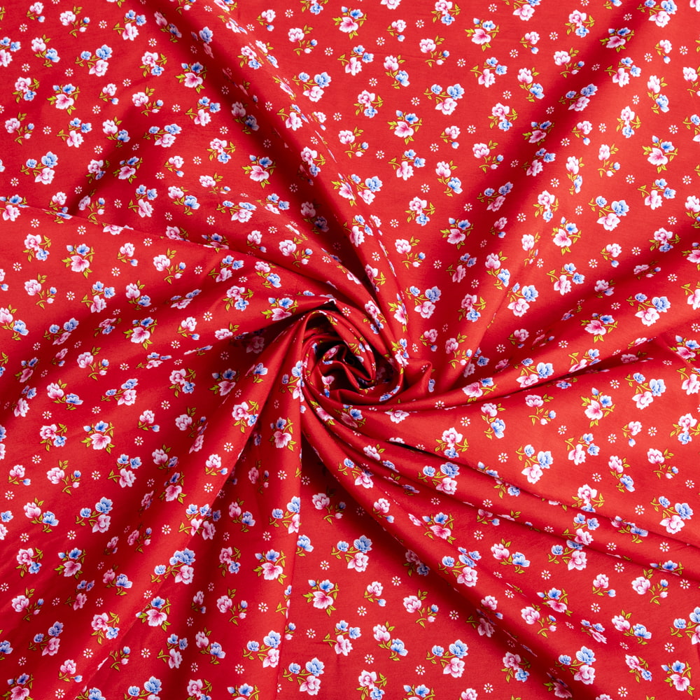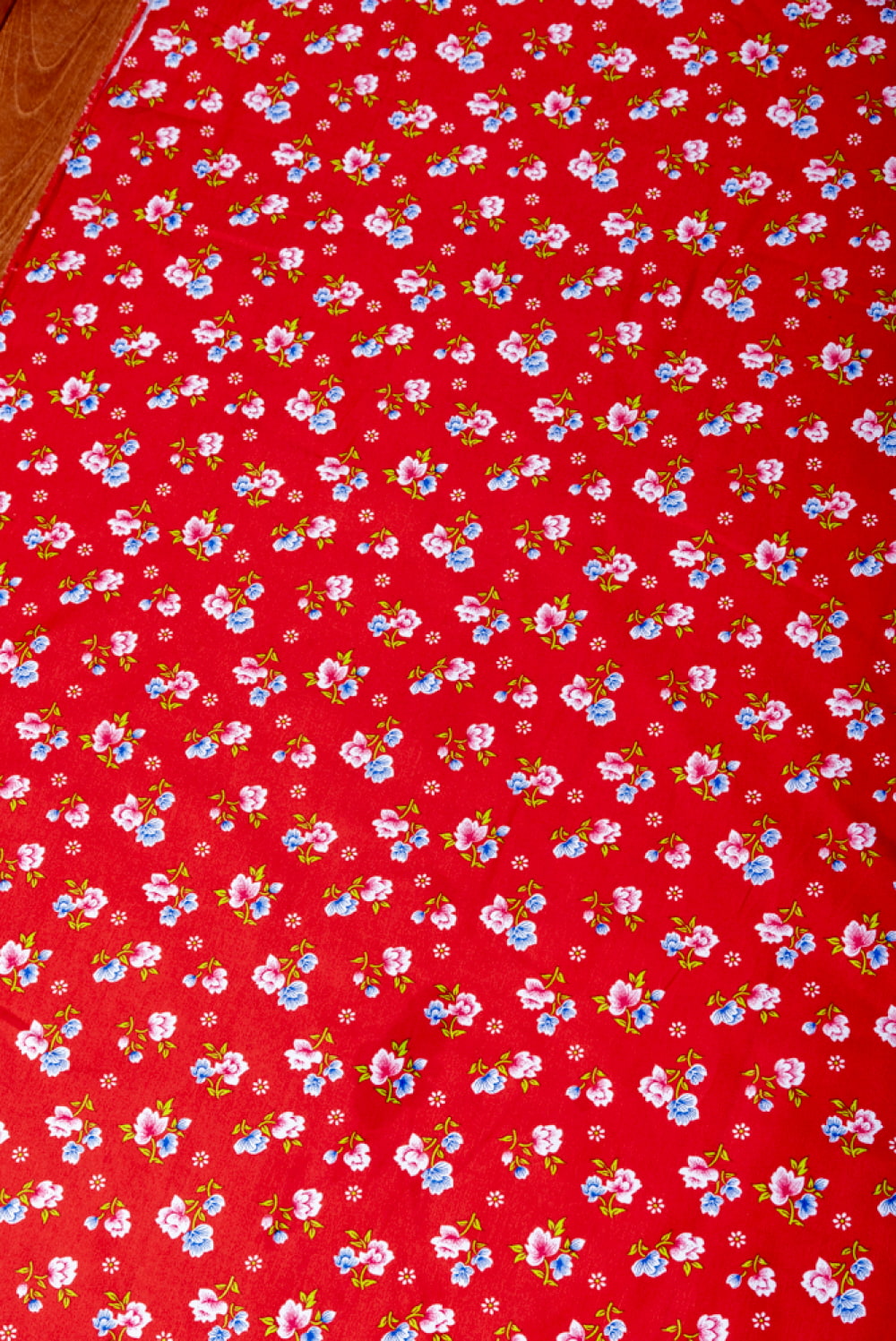 【3個セット】〔1m単位切り売り〕アジアのレトロ小花柄ファブリック ヴィンテージ風 昭和レトロ〔約162.5cm〕 - レッド 通販店
