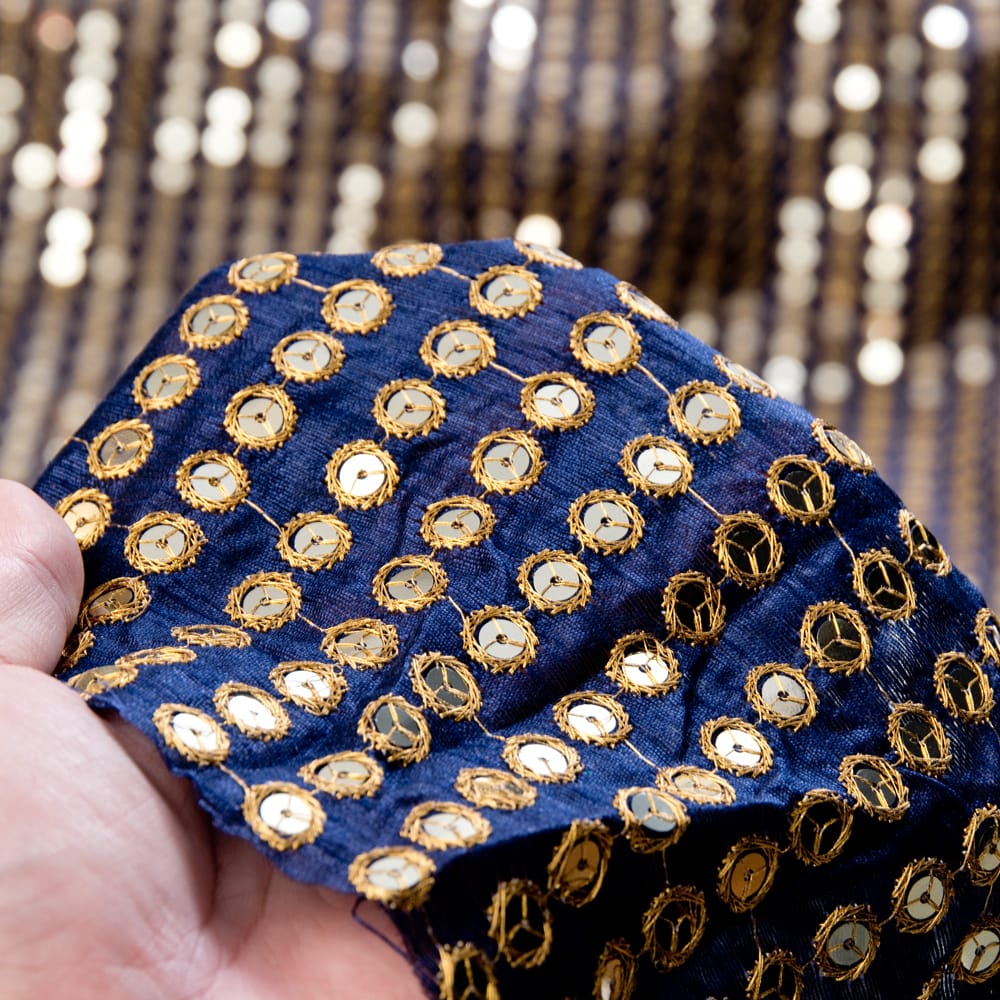 〔1m単位切り売り〕インドのスパンコールクロス布〔107cm〕 - ネイビー x 3個