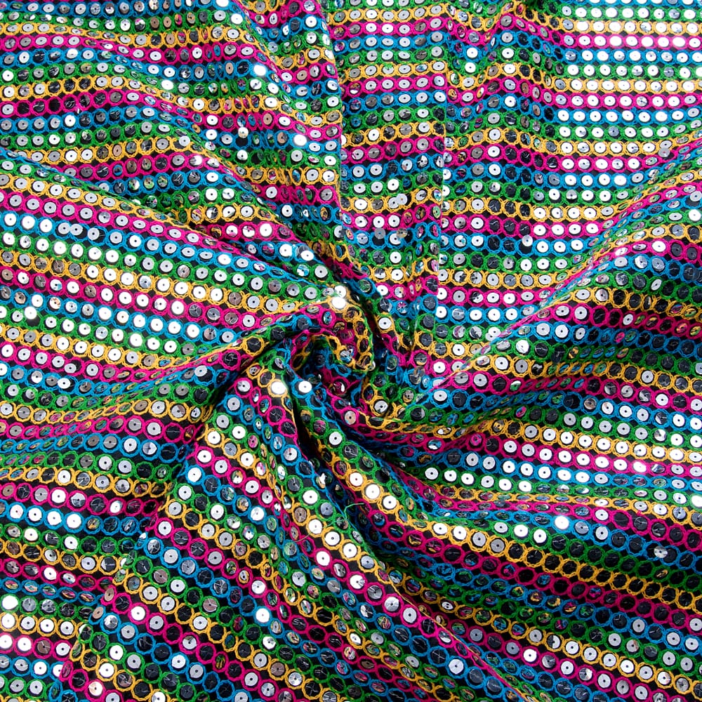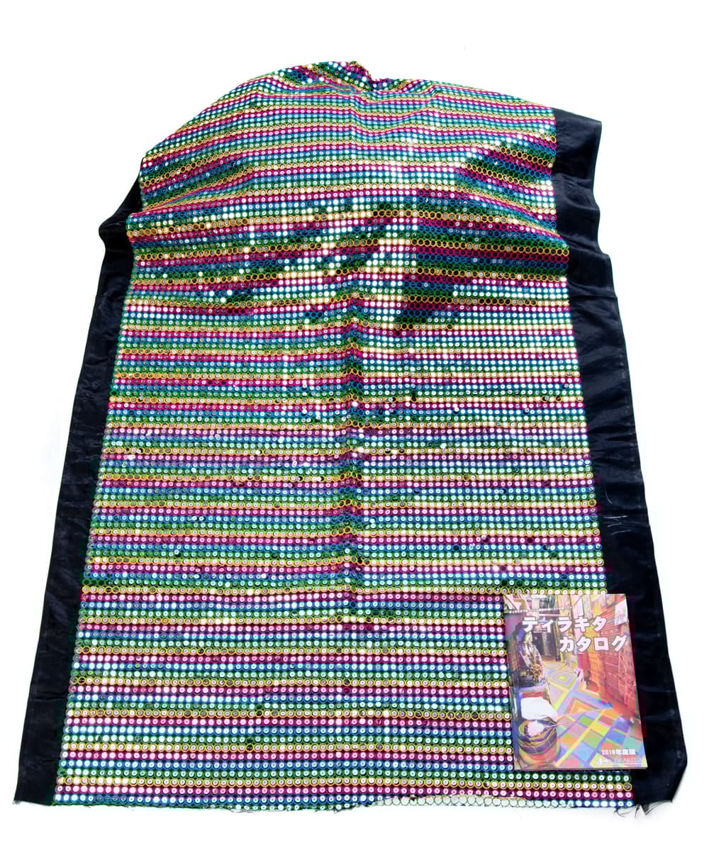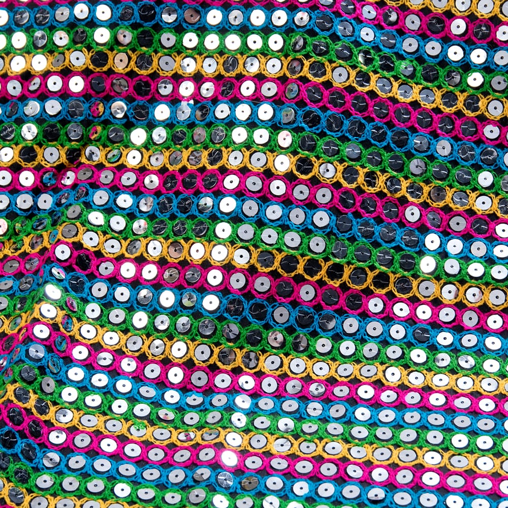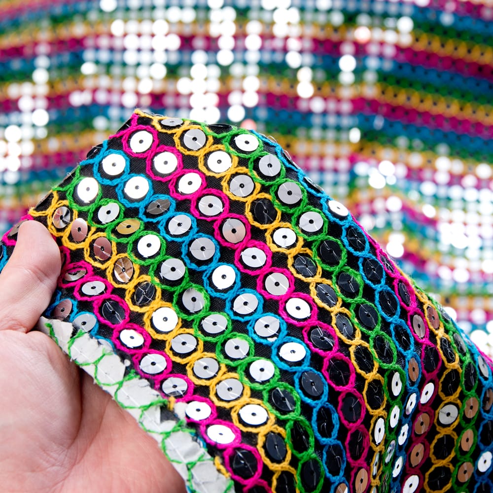 〔1m単位切り売り〕インドのスパンコールクロス布〔107cm〕 - ブラック×マルチカラー x 3個