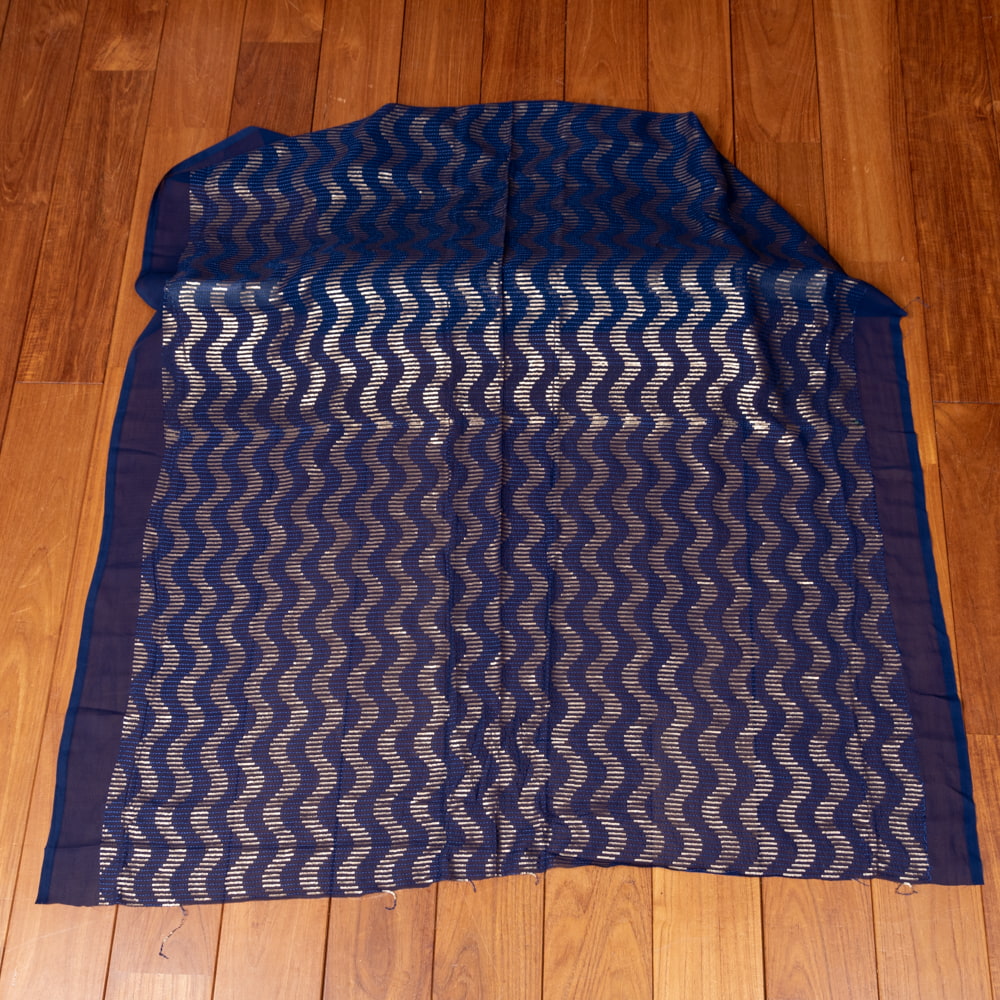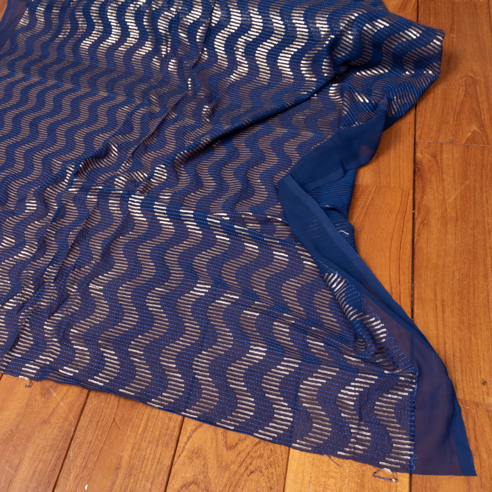 〔1m単位切り売り〕インドのスパンコール刺繍付き シフォン生地布〔約106cm〕ネイビー系 x 3個