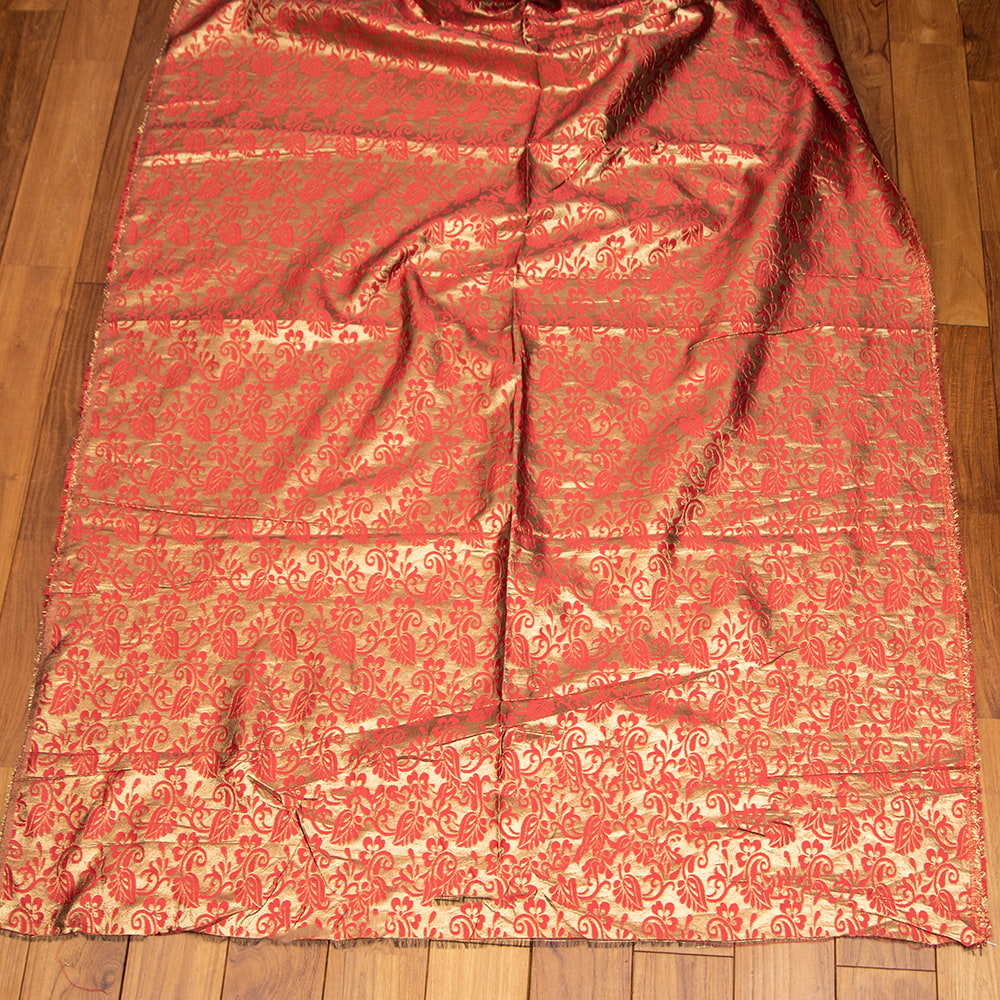 伝統的な紋様とインドらしいカラーリングがマッチングした素敵な布です。色合いが美しく、手芸用の布としてはもちろんインテリア用のカバーや飾り布として様々な場所でお使いいただけます。ソファカバーやカーテン、等々色々な使いみちが考えられますね。陰影が美しいので、オリジナルのスカーフや壁飾りにしても素敵です。