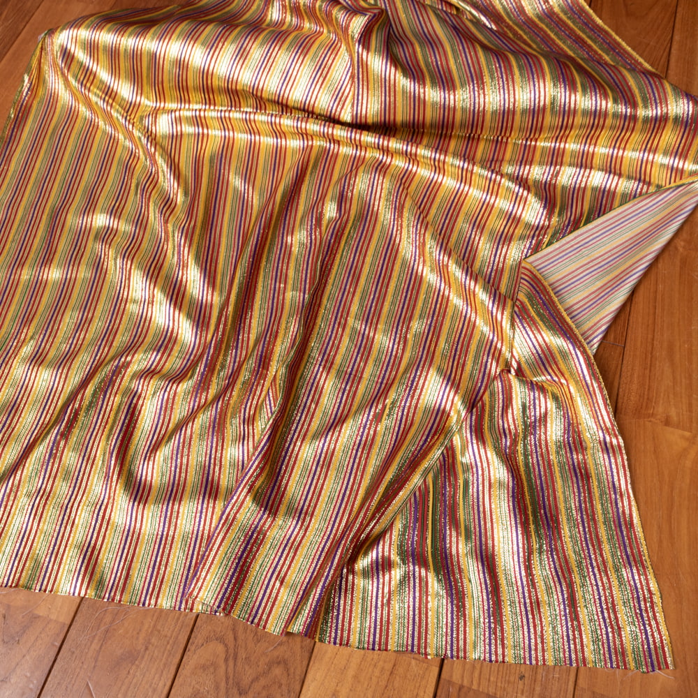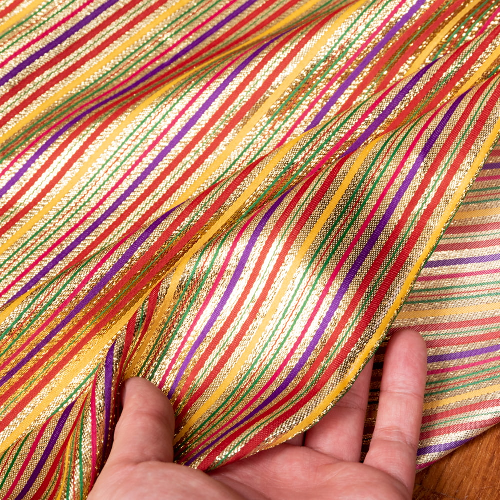 〔1m単位切り売り〕インドの伝統模様布 ボーダー ストライプ柄〔約103cm〕カラフル系 x 3個