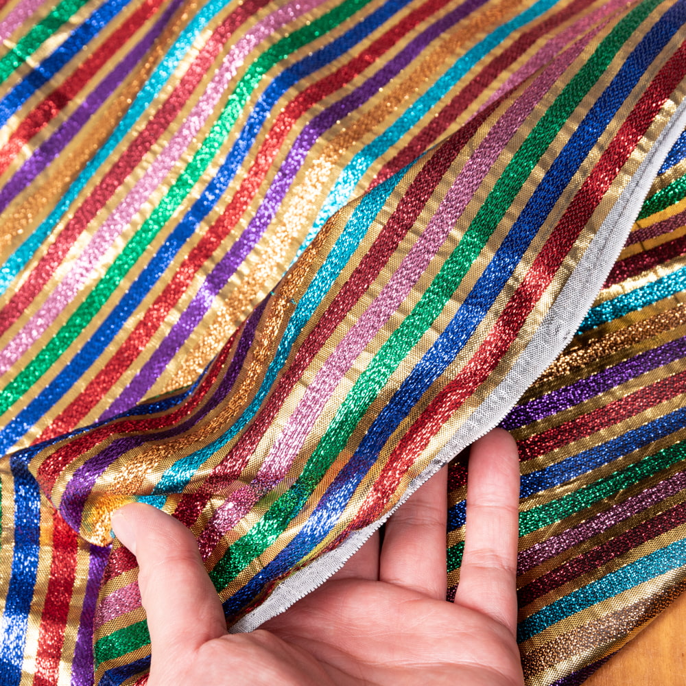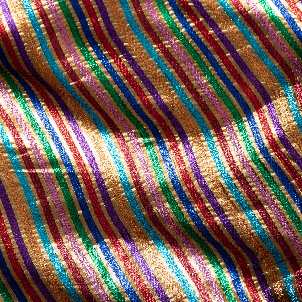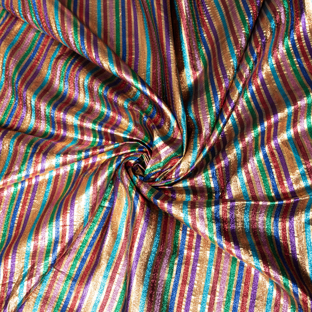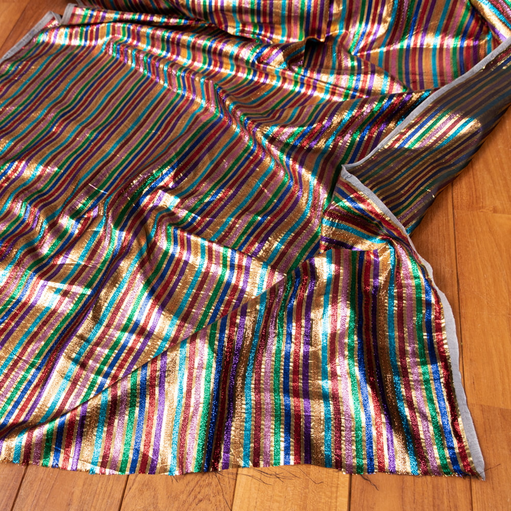 〔1m単位切り売り〕インドの伝統模様布 ボーダー ストライプ柄〔約107cm〕カラフル系 x 3個