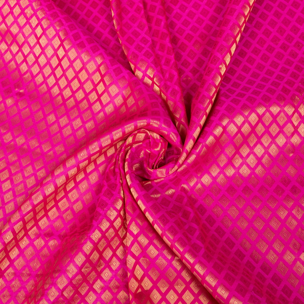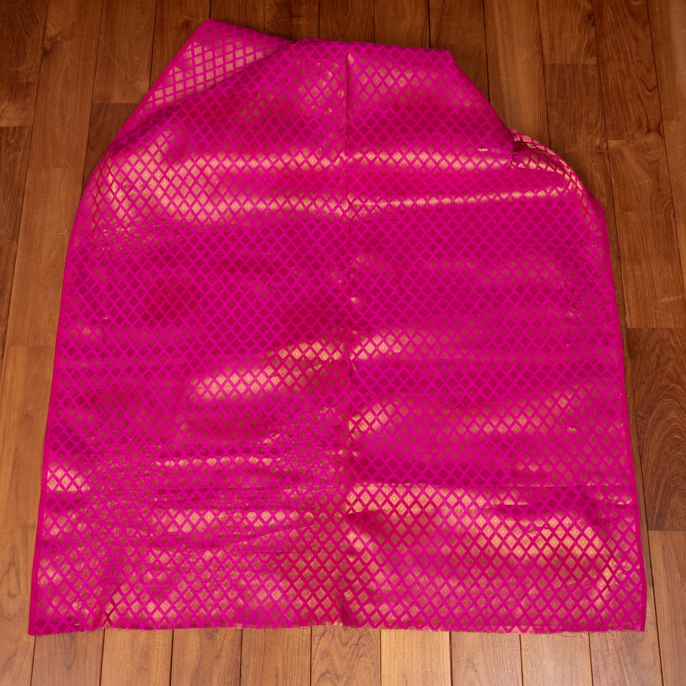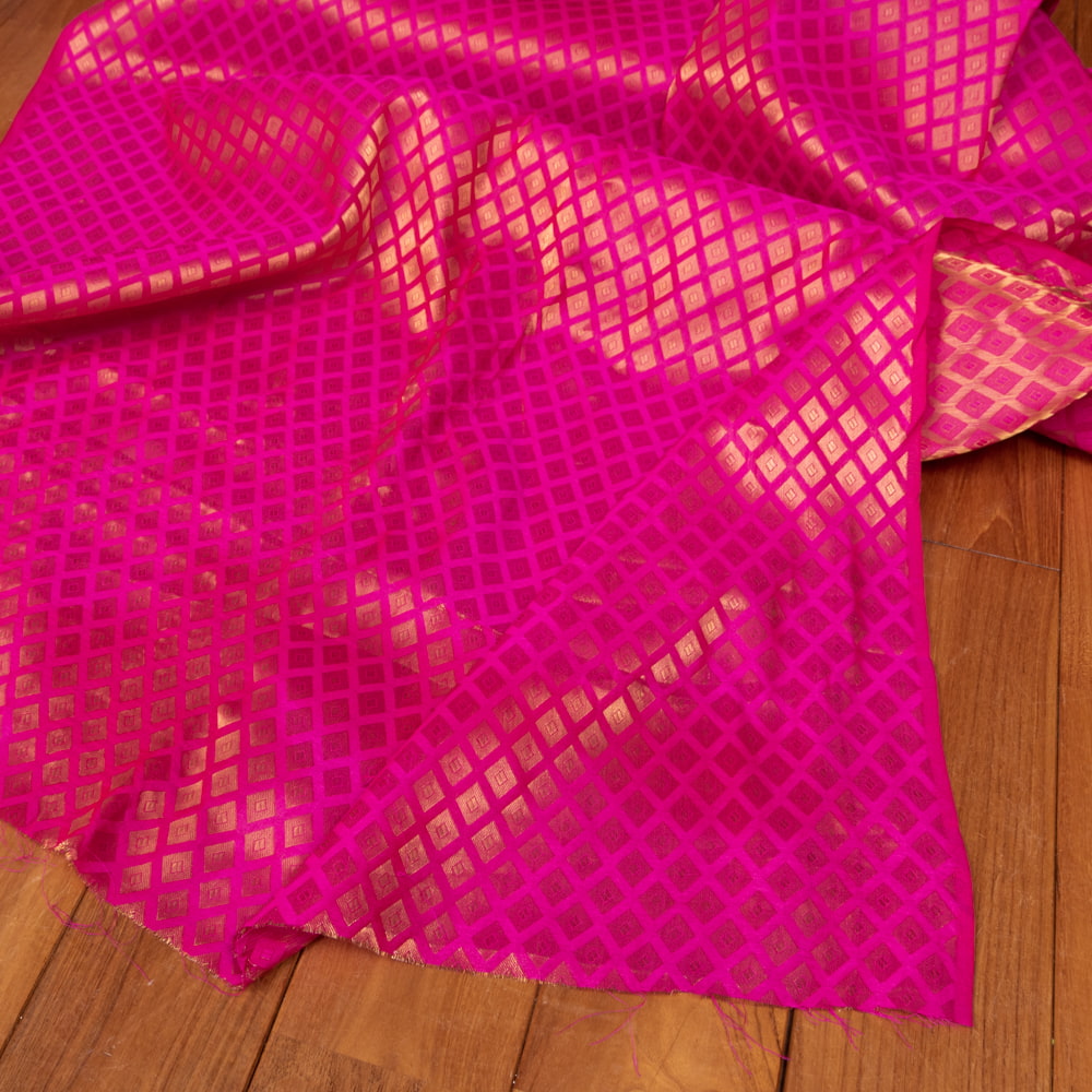 〔1m単位切り売り〕インドの伝統模様布 光沢感のあるブロケード生地 金糸〔約109cm〕ピンク系 x 3個