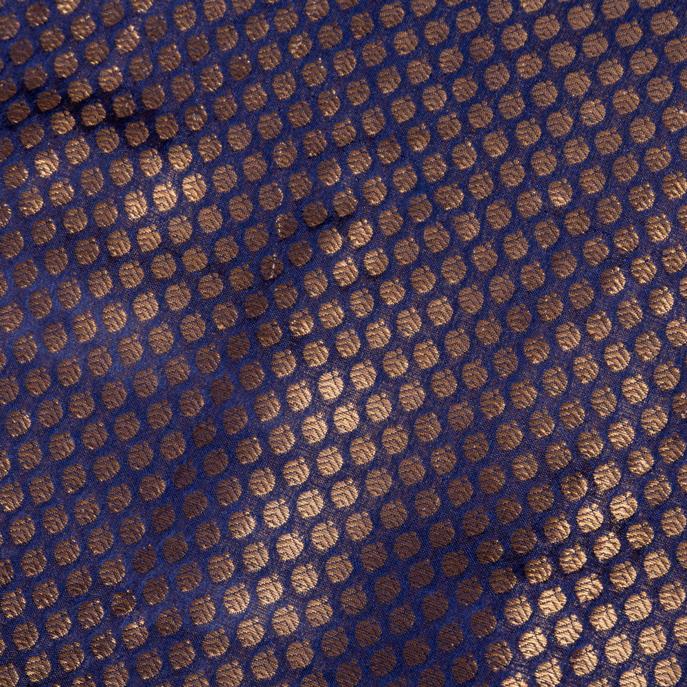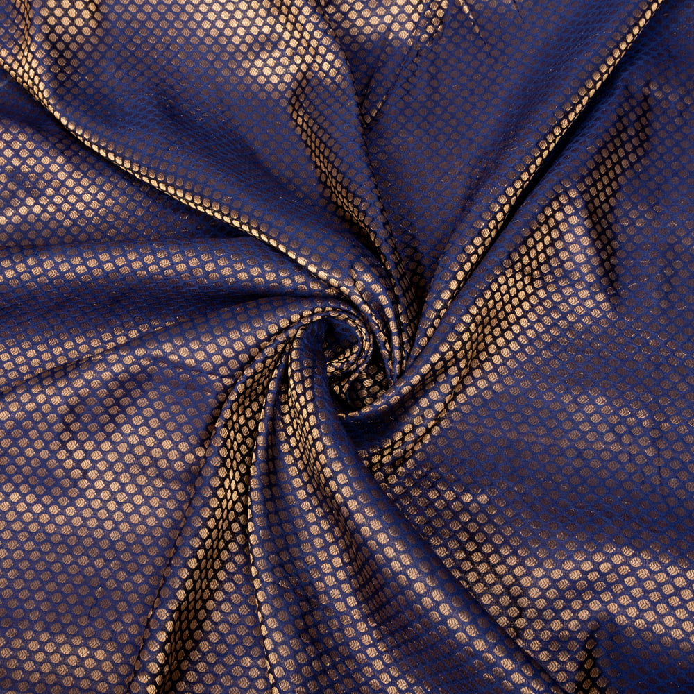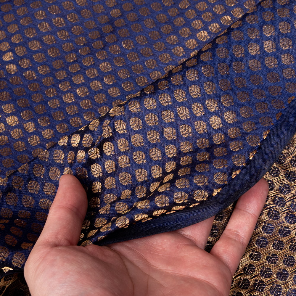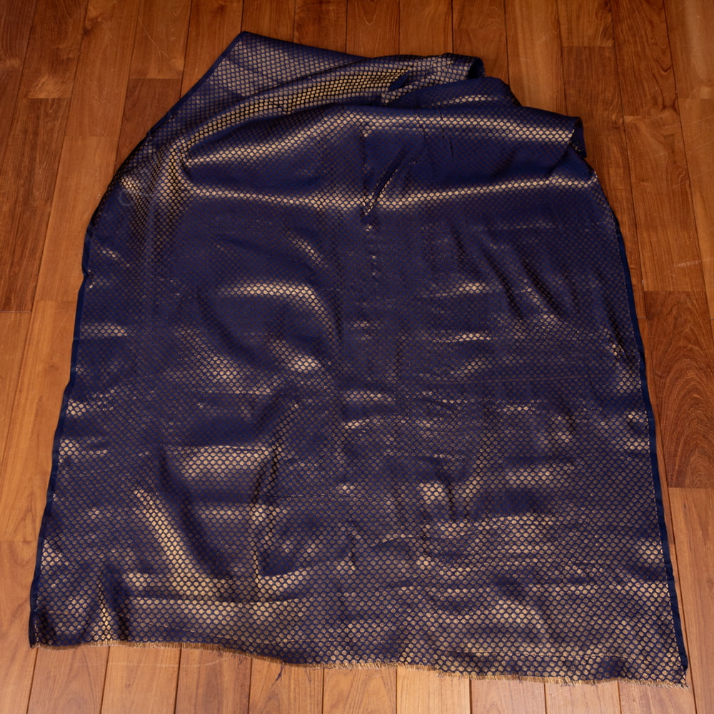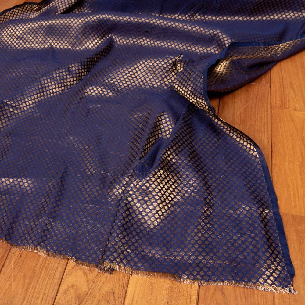 〔1m単位切り売り〕インドの伝統模様布 光沢感のあるブロケード生地 金糸〔約110cm〕ネイビー系 x 3個