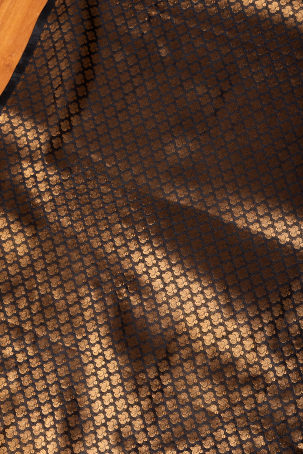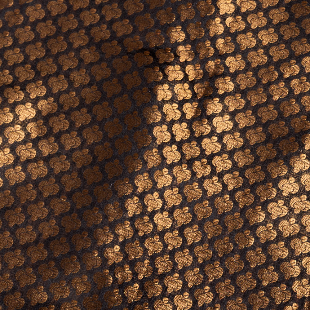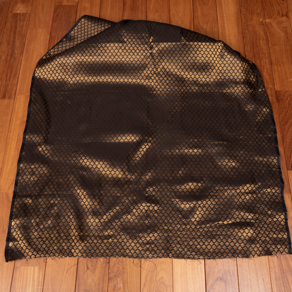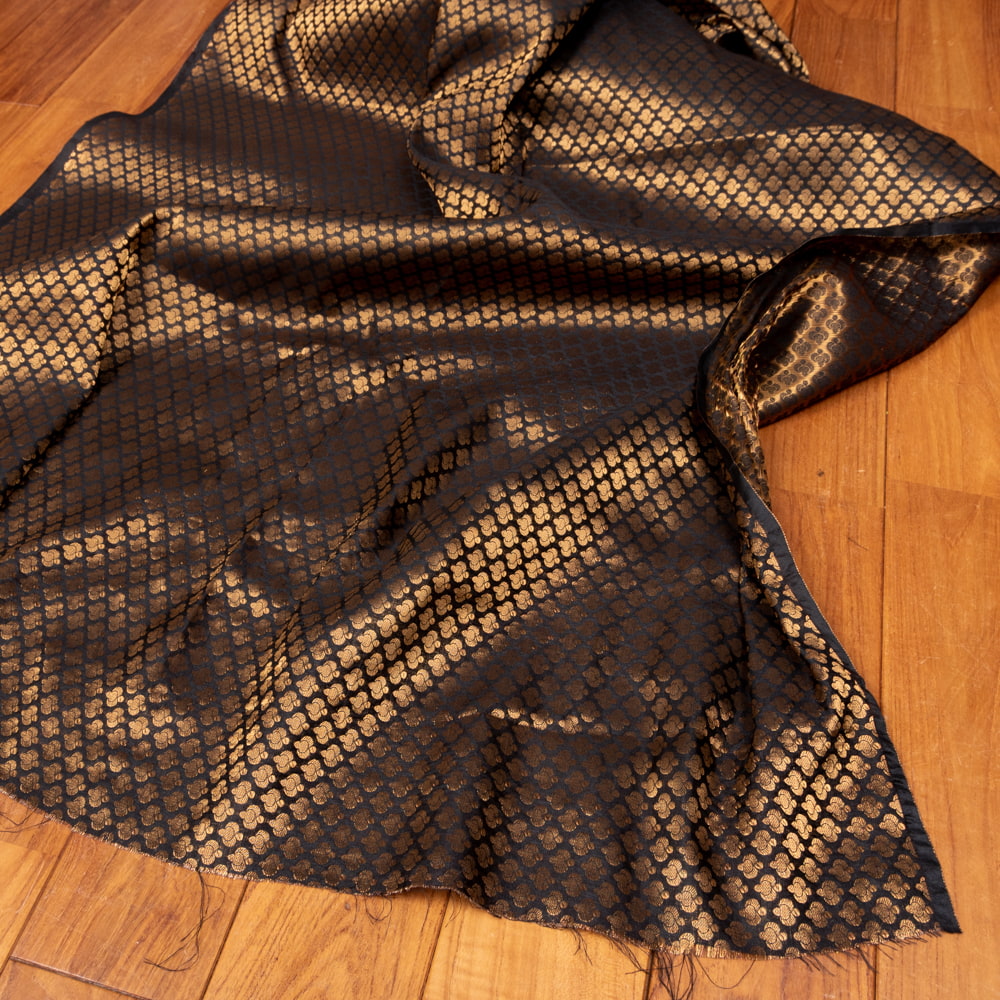 〔1m単位切り売り〕インドの伝統模様布 光沢感のあるブロケード生地 金糸〔約111cm〕ブラック系 x 3個