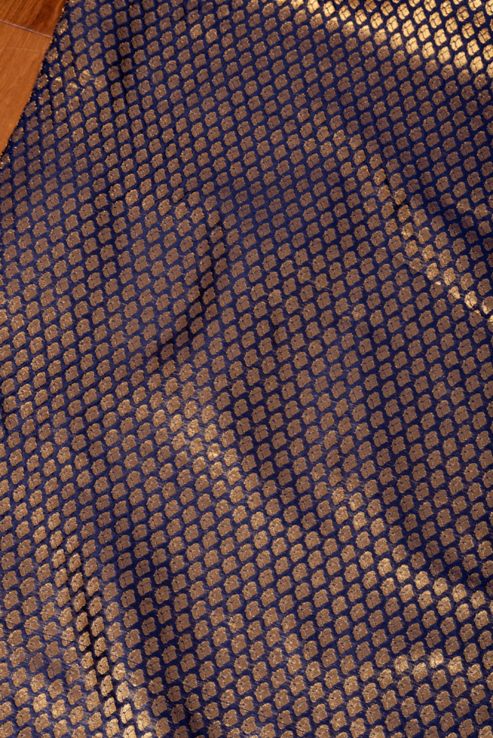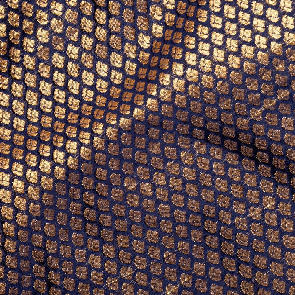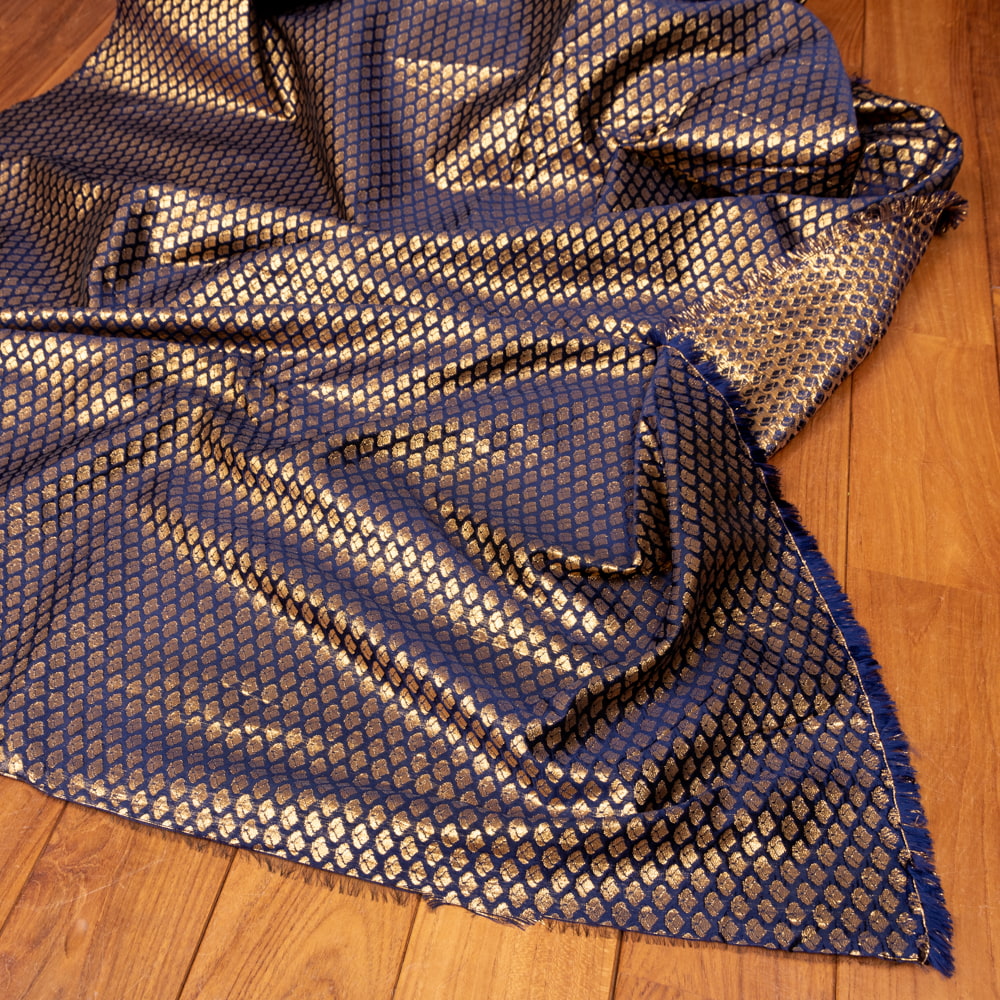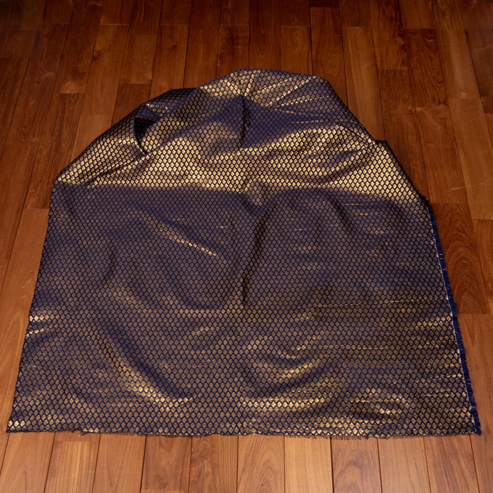 〔1m単位切り売り〕インドの伝統模様布 光沢感のあるブロケード生地 金糸〔約123cm〕ネイビー系 x 3個