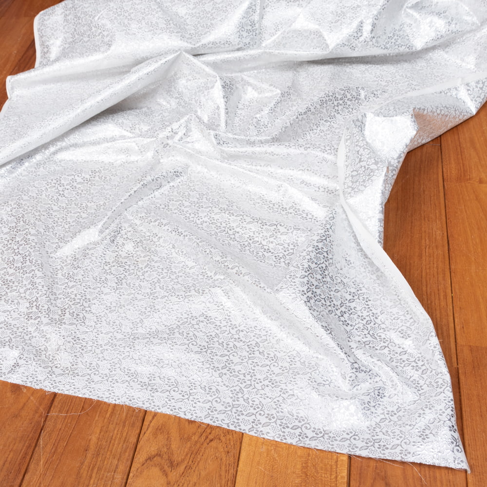 〔1m単位切り売り〕インドの伝統模様布 光沢感のあるブロケード生地〔約101cm〕ホワイト系 x 3個