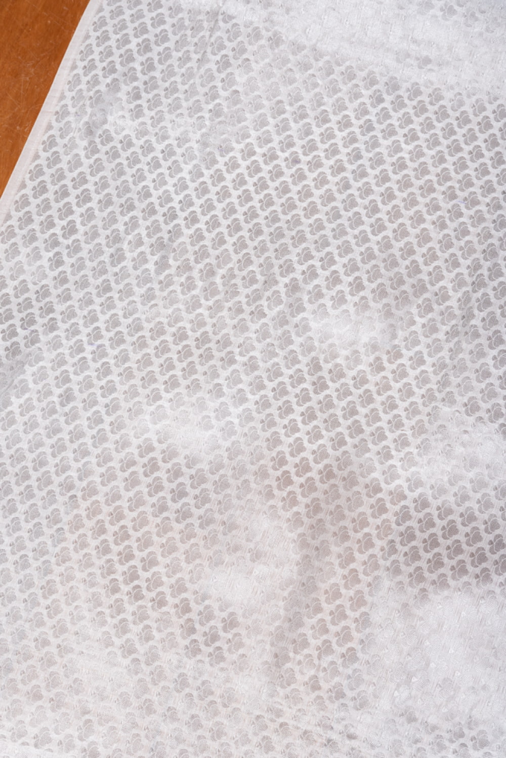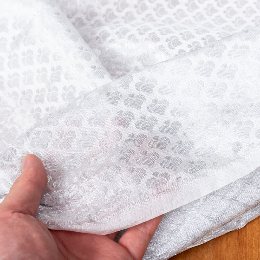 〔1m単位切り売り〕インドの伝統模様布 光沢感のあるブロケード生地〔約103cm〕ホワイト系 x 3個